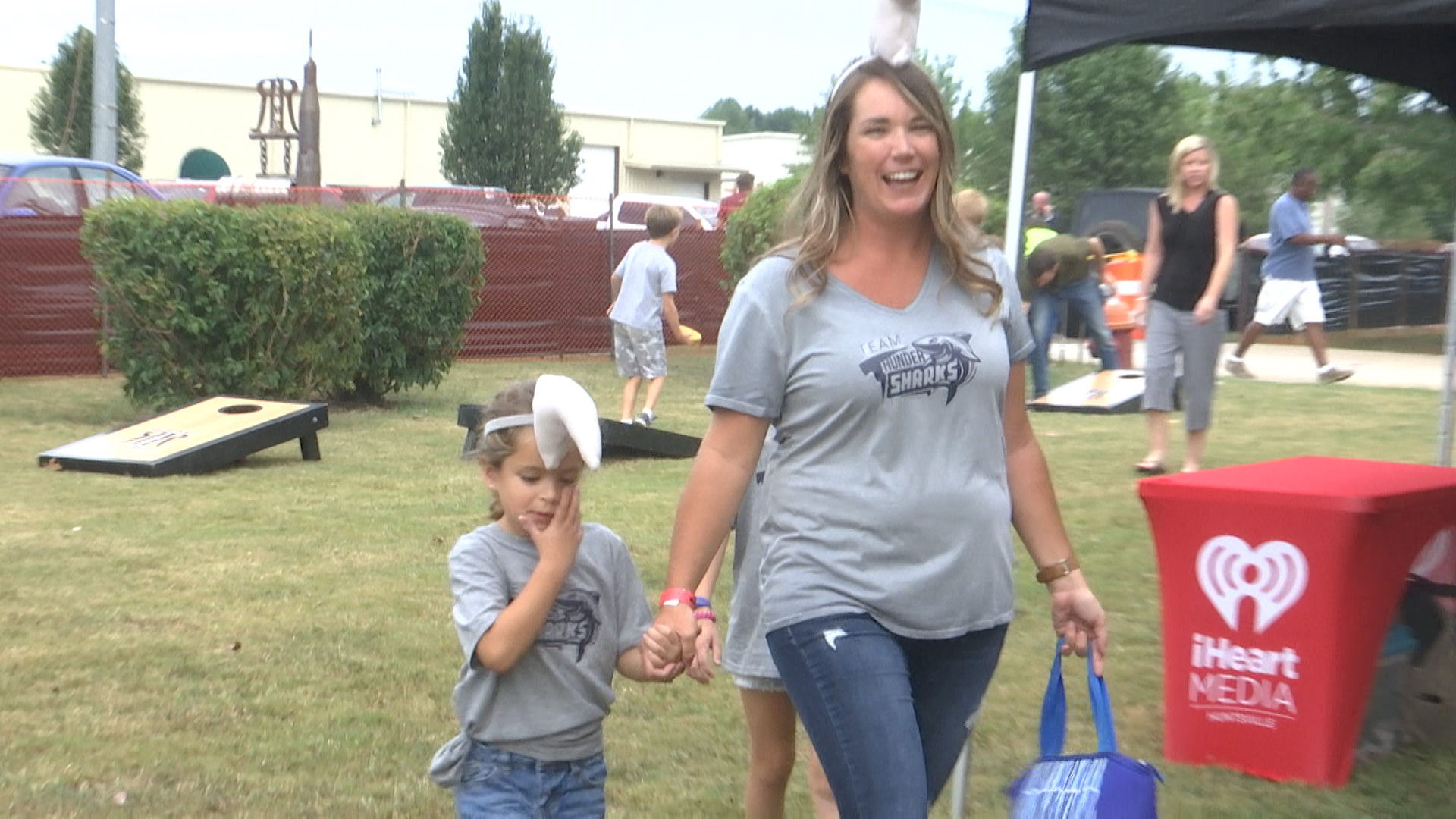“It sounded the least ridiculous but I guess there’s something niche about that,” said Ashley Linares, wearing a shark dorsal fin on her head alongside her two daughters.