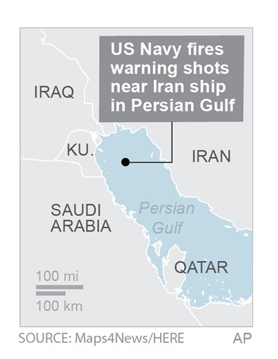 DUBAI, United Arab Emirates (AP) – A U.S. Navy patrol boat fired warning shots Tuesday near an Iranian vessel that American sailors said came dangerously close to them during a tense encounter in the Persian Gulf, the first such incident to happen under President Donald Trump. Iran’s hard-line Revolutionary Guard later blamed the American ship for provoking the situation.