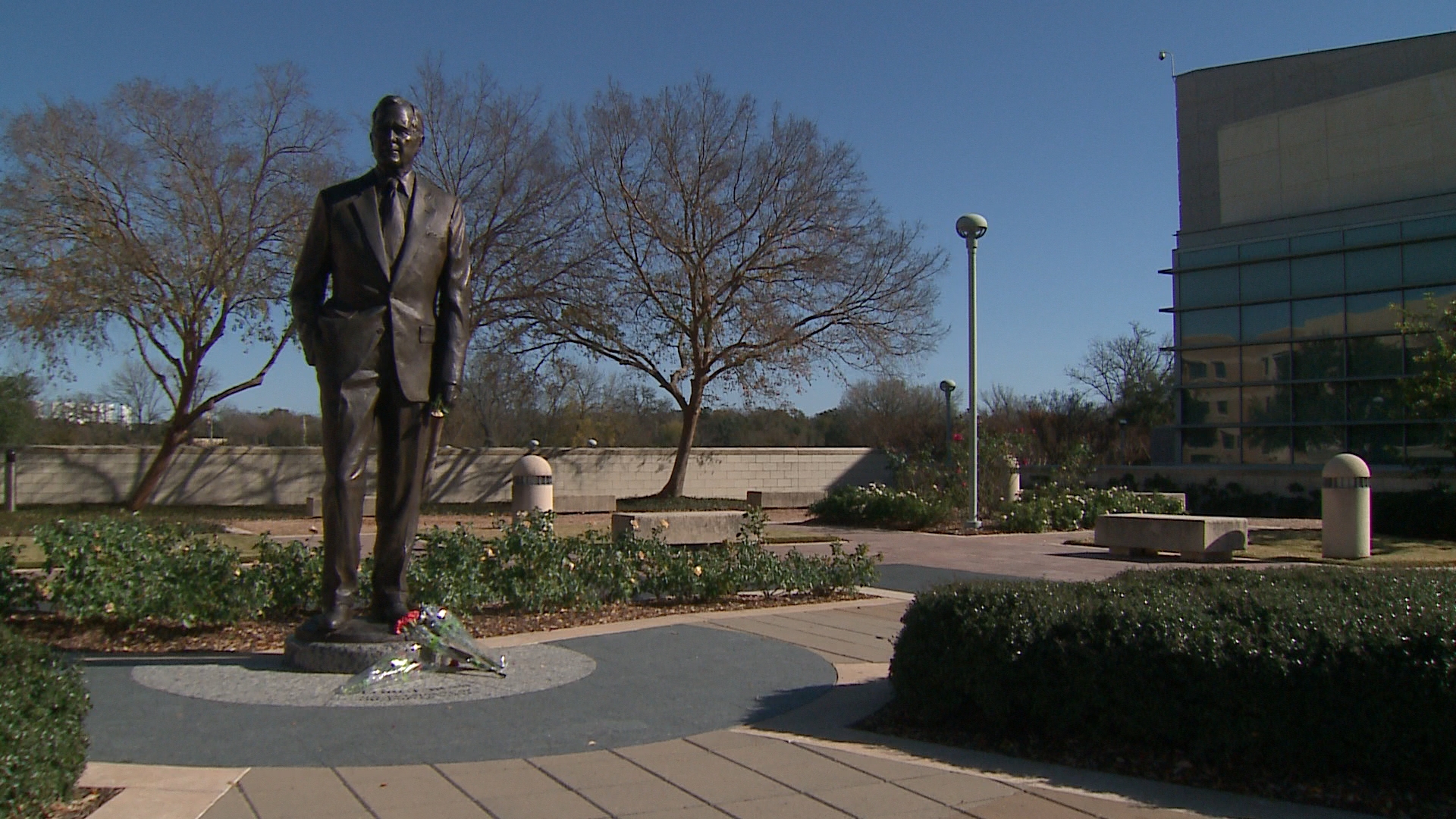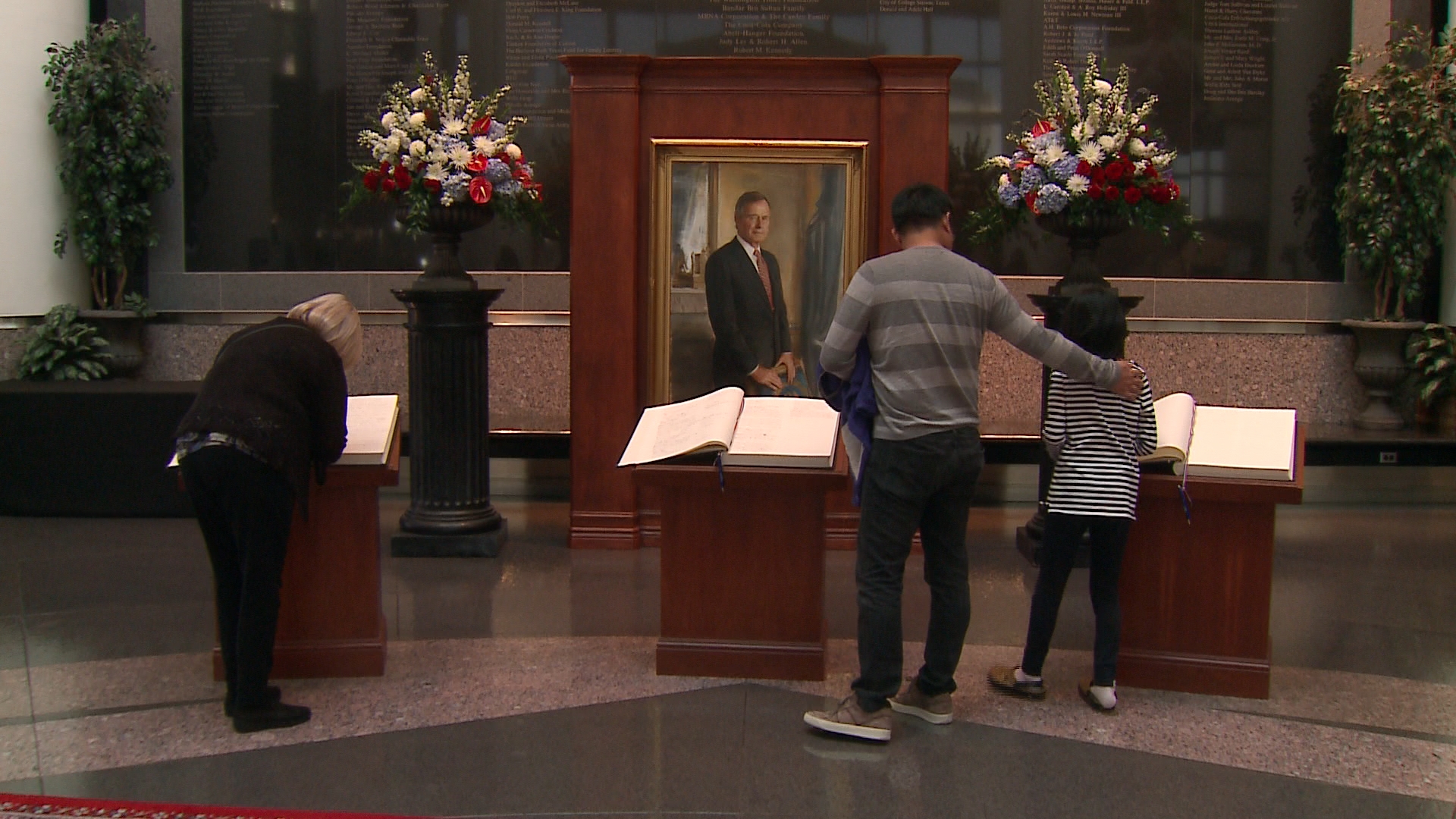 “We’ve always admired him not just as a president but as a human being for his compassion to others, his empathy, his humility, his whole thought of servant leadership and putting others first,” museum visitor Lori Steele said as she left flowers at the base of the Bush statue located between the library and the school that share names with the 41st president.