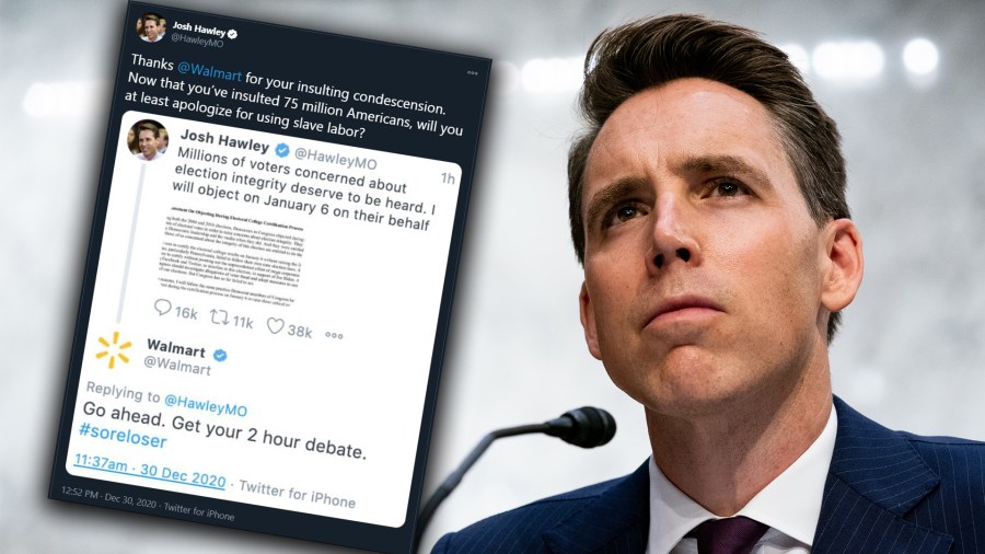 Hawley, who said he would raise objections next week when Congress meets to affirm President-elect Joe Biden’s win in the 2020 election, responded to the Bentonville-based retailer from his own account.