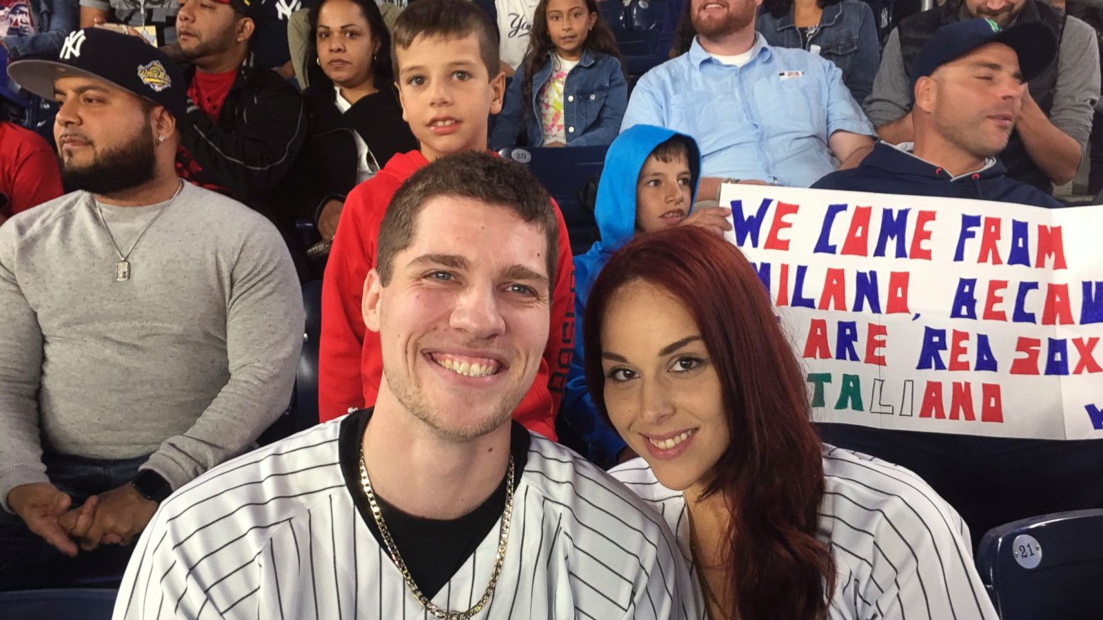 Fox took Terwilliger to the game as a belated present for her Sept. 21 birthday and bought Yankees jerseys as an extra gift. He wore a Mariano Rivera No. 42 and Terwilliger sported Derek Jeter’s No. 2.
