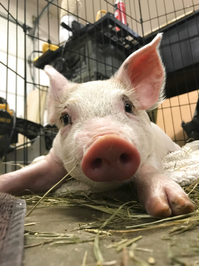 She thinks the piglet fell off a livestock truck. Veterinarians say the animal needs surgery on a hernia it likely developed in the fall from the truck.