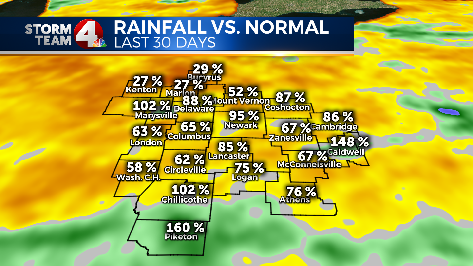 To back this up, check out the image below, its of the 30 day vs normal rainfall (100% = normal, 0% = no rain, dry)