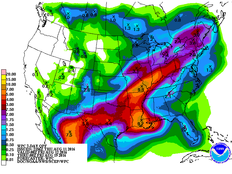 Below for fun, I have added the 7 day rainfall total graphic from the Weather Prediction Center at NOAA.