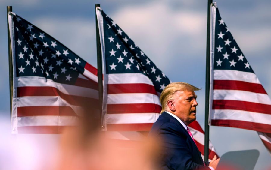 LUMBERTON, NC - OCTOBER 24: U.S. President Donald Trump addresses a crowd during a campaign rally on October 24, 2020 in Lumberton, North Carolina. President Trump has expressed his support for the Lumbee Indian people to be recognized on a federal level. President Trump continues to campaign against Democratic presidential nominee Joe Biden leading up to the November 3rd Election Day. (Photo by Melissa Sue Gerrits/Getty Images)