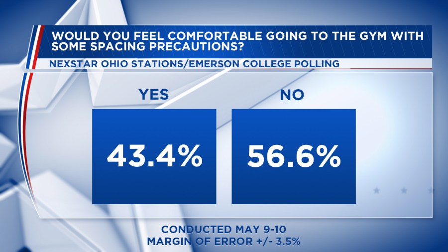 COLUMBUS (NEXSTAR) — Our exclusive poll of over 700 Ohioans statewide showed most respondents are more comfortable going back to work as the state reopens than they are going out to eat or to work out at the gym.
