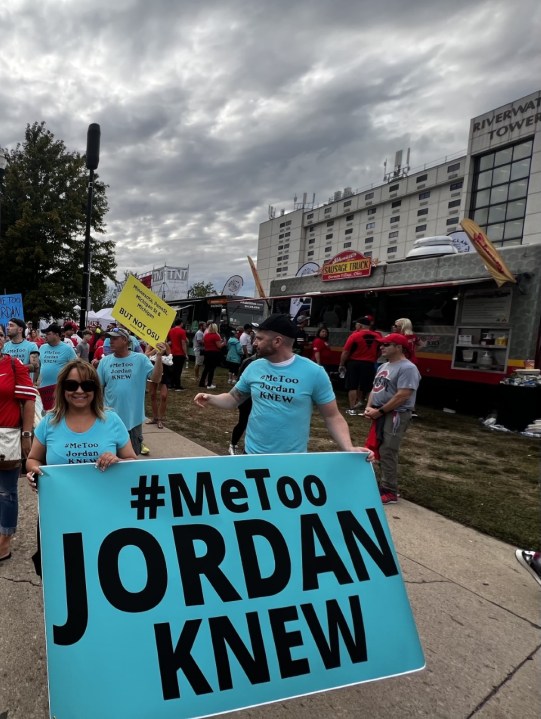 Abused by the team doctor under the guise of medical exams from 1978 to 1998, the survivors – some of whom donned “#MeToo Jordan Knew” T-shirts outside Ohio Stadium on Saturday during an Ohio State football game – argued Jordan’s failure to protect them from a predator makes him unfit for office.