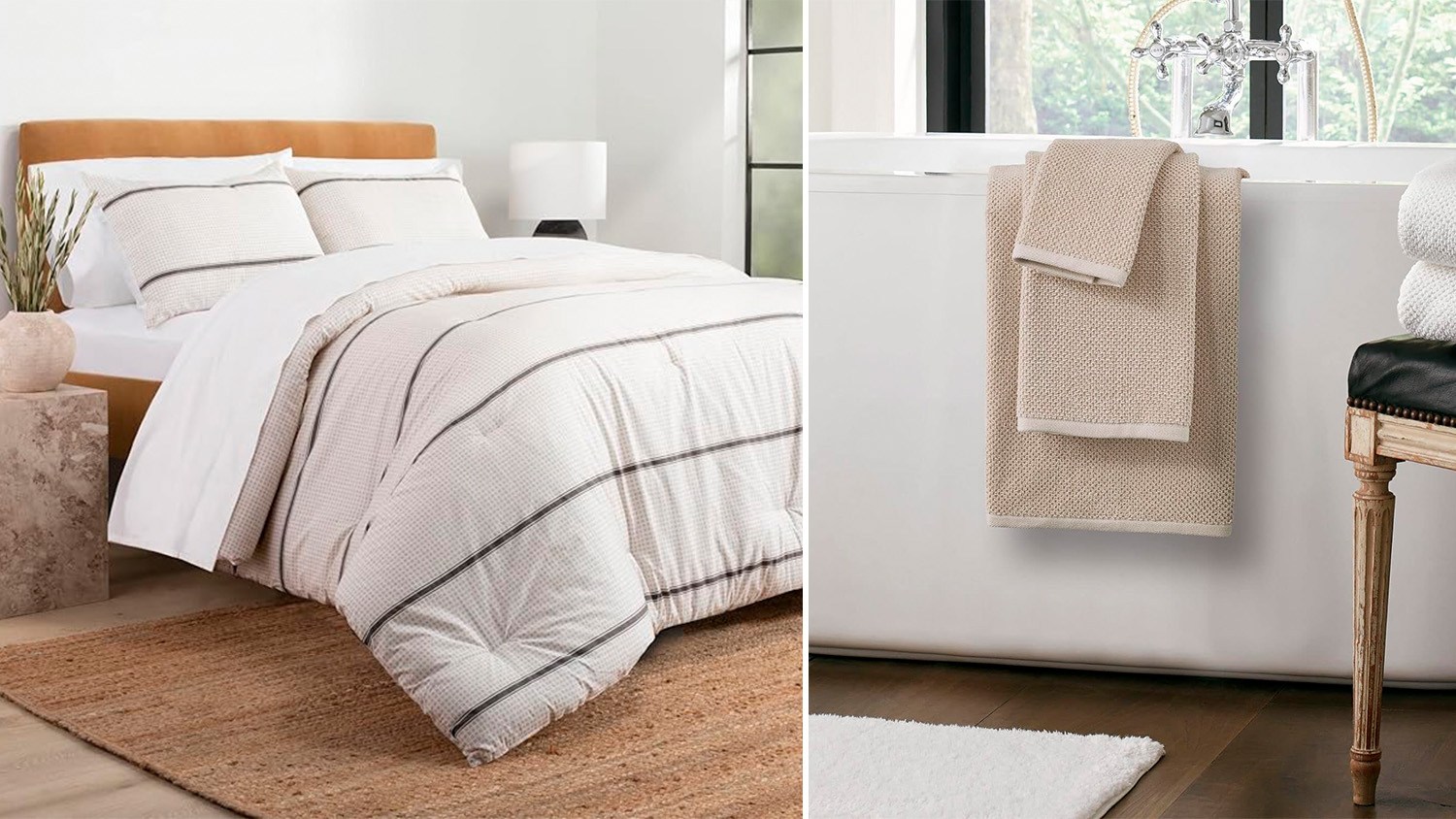 In this article: Nate Home Solid All-Season Cotton Textured Quilt Set, Nate Home Nonslip Cotton Bath Rug and Nate Home 4-Piece 100% Cotton Textured Rice Weave Hand Towel Set