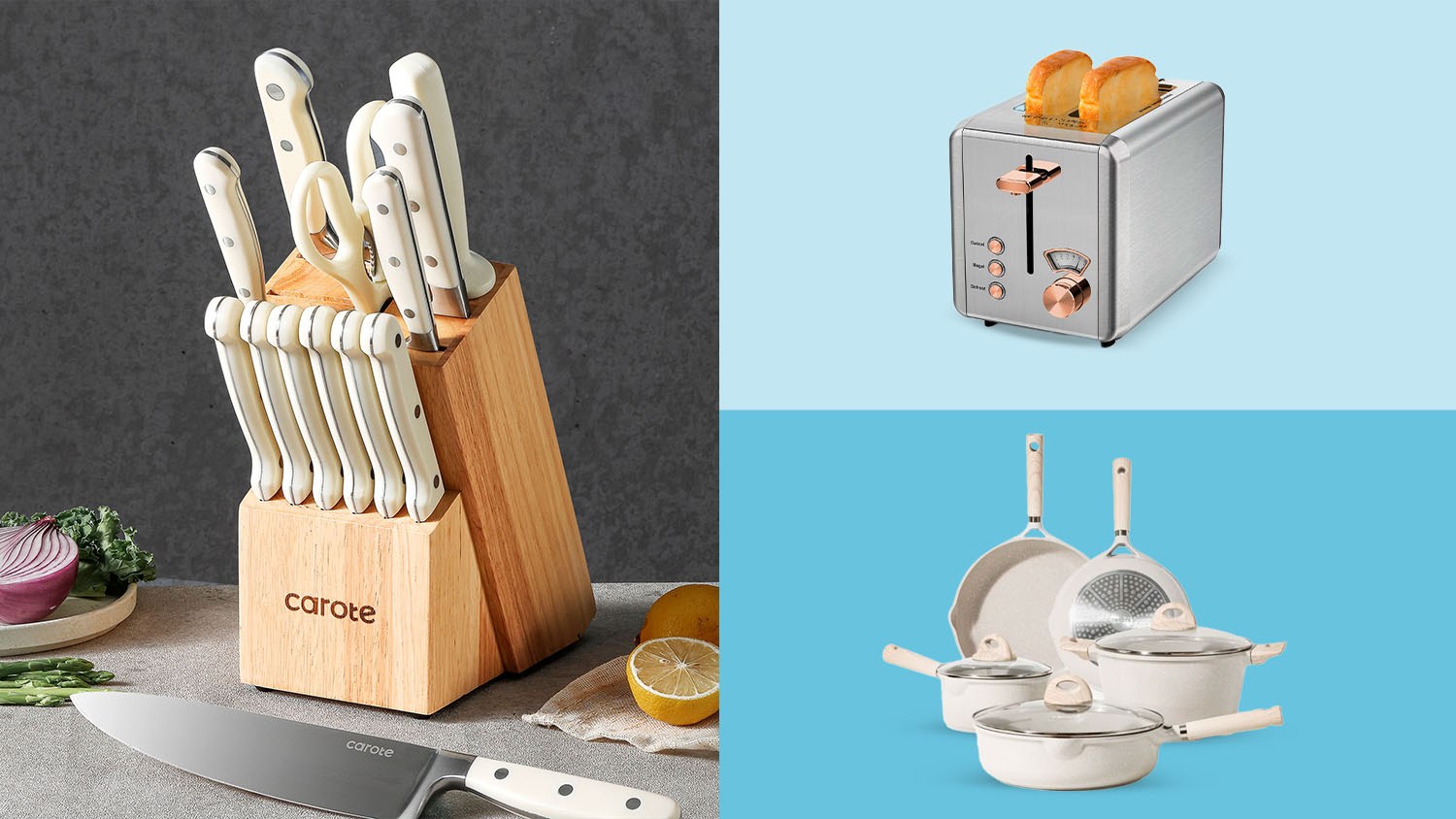 In this article: Carote Nonstick Pots and Pans Set, 8 Pcs Induction Kitchen Cookware Sets, Carote 14 Pieces Knife Set with Wooden Block and ATUPEN Food Warming Mat