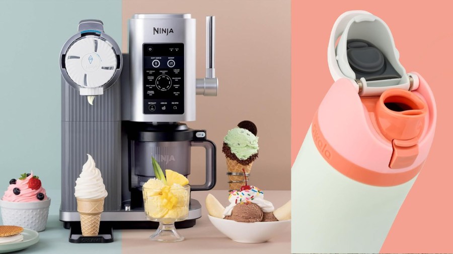 In this article: Owala FreeSip Insulated Stainless Steel Water Bottle, Ninja Swirl by CREAMi Ice Cream and Soft Serve Maker and KitchenAid Ribbed Soft Silicone Oven Mitt Set