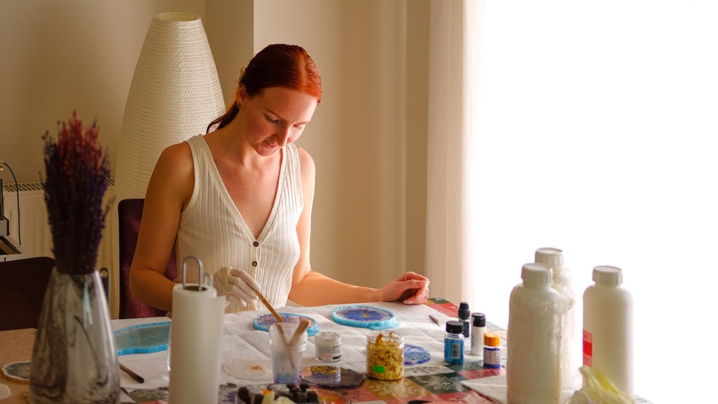 Using epoxy resin as an art form is labor-intensive but visually striking. Normally, mixing the chemicals together will give you a clear epoxy, but pigments can be added to change the color, just like in an oil painting.