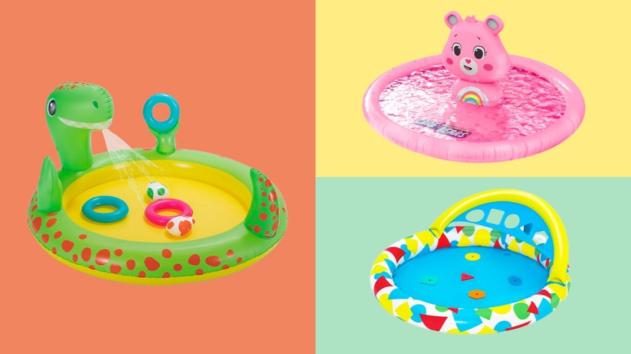 In this article: Summer Waves Inflatable Dino Spray Pool, Care Bears Deluxe Inflatable Splash Pad with Sprinkler and Play Day Inflatable Shark Shade Baby Splash Pool
