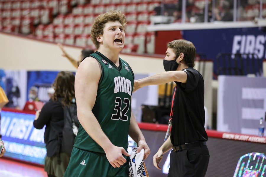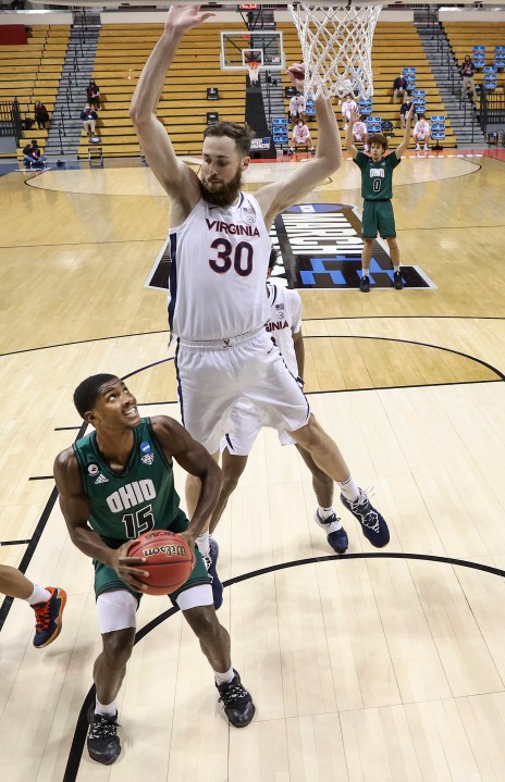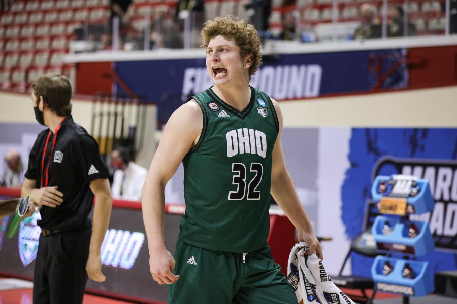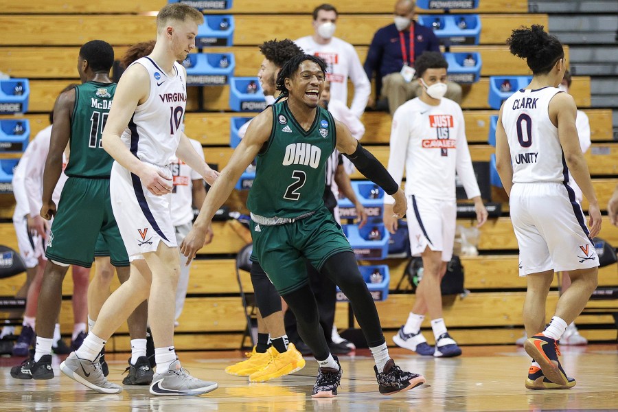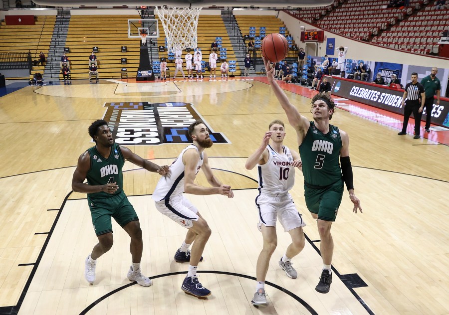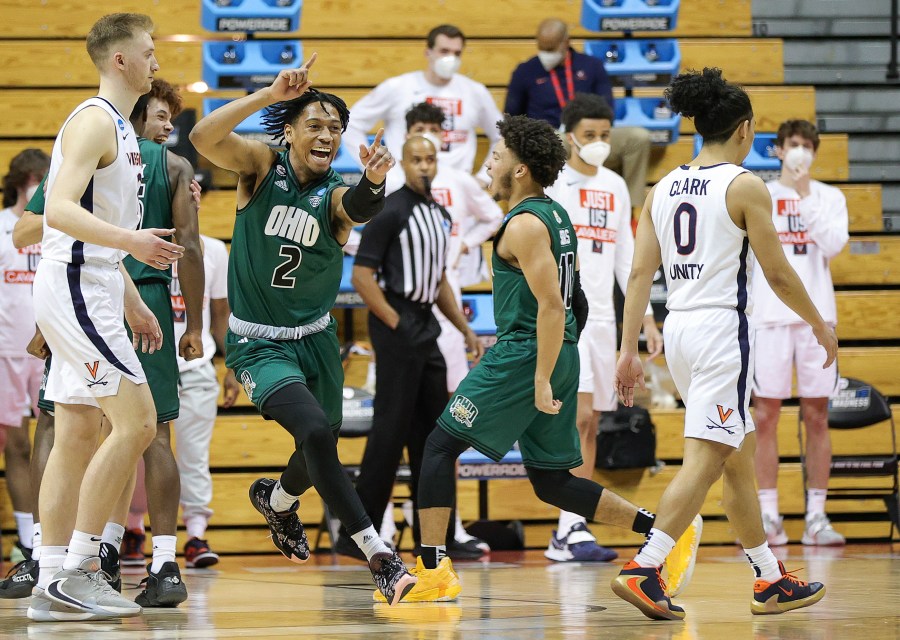 BLOOIMINGTON, Ind. (WCMH) — The No. 13 Ohio Bobcats shocked the No. 4 Virginia Cavaliers 62-58 in the first round of the NCAA Tournament at Assembly Hall on Saturday night giving OU its first tournament win since 2012.
