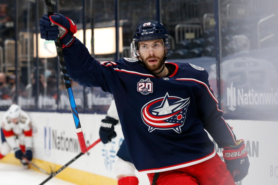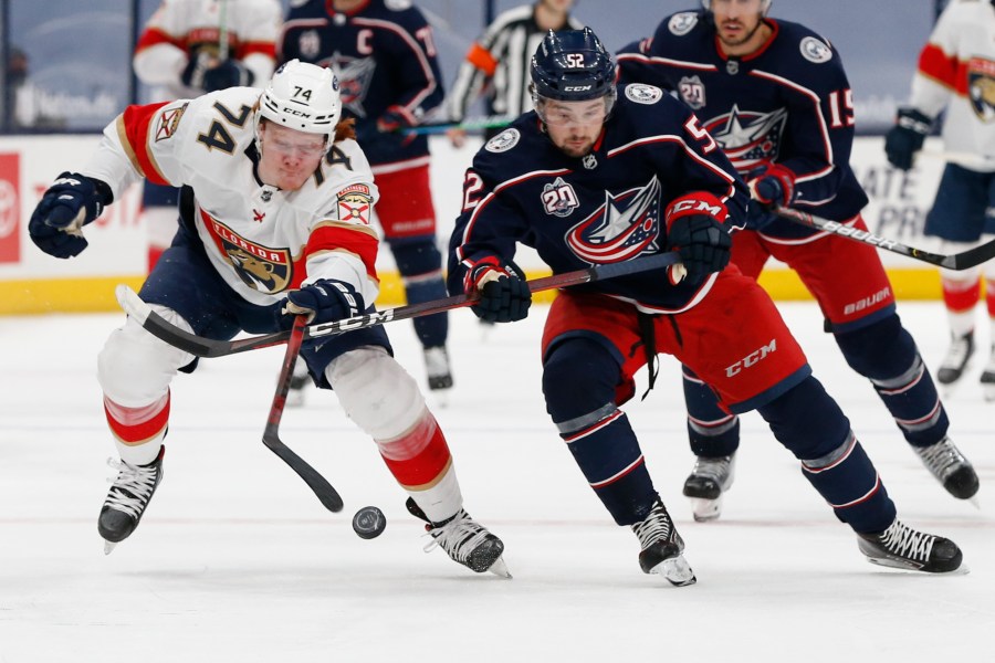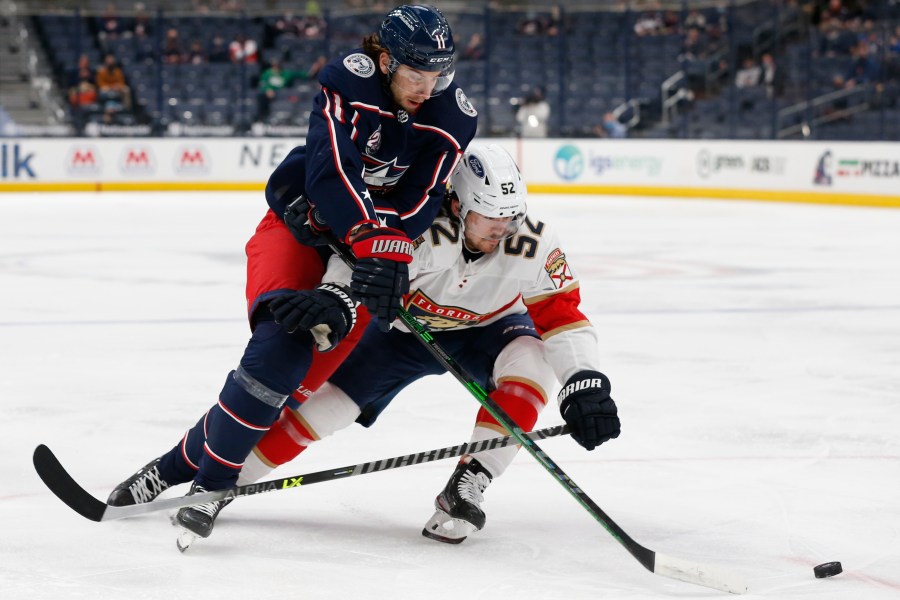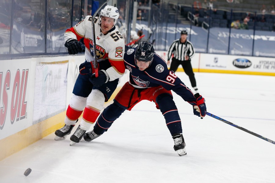 COLUMBUS, Ohio (WCMH) — The Columbus Blue Jackets blew a three-goal lead losing 5-4 to the Florida Panthers in overtime on Thursday night as goaltender Elvis Merzlikins struggled in his first game since Feb. 20.