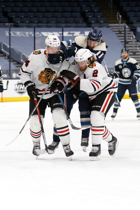 Chicago scored the first two goals before Cam Atkinson netted his sixth goal in seven games.