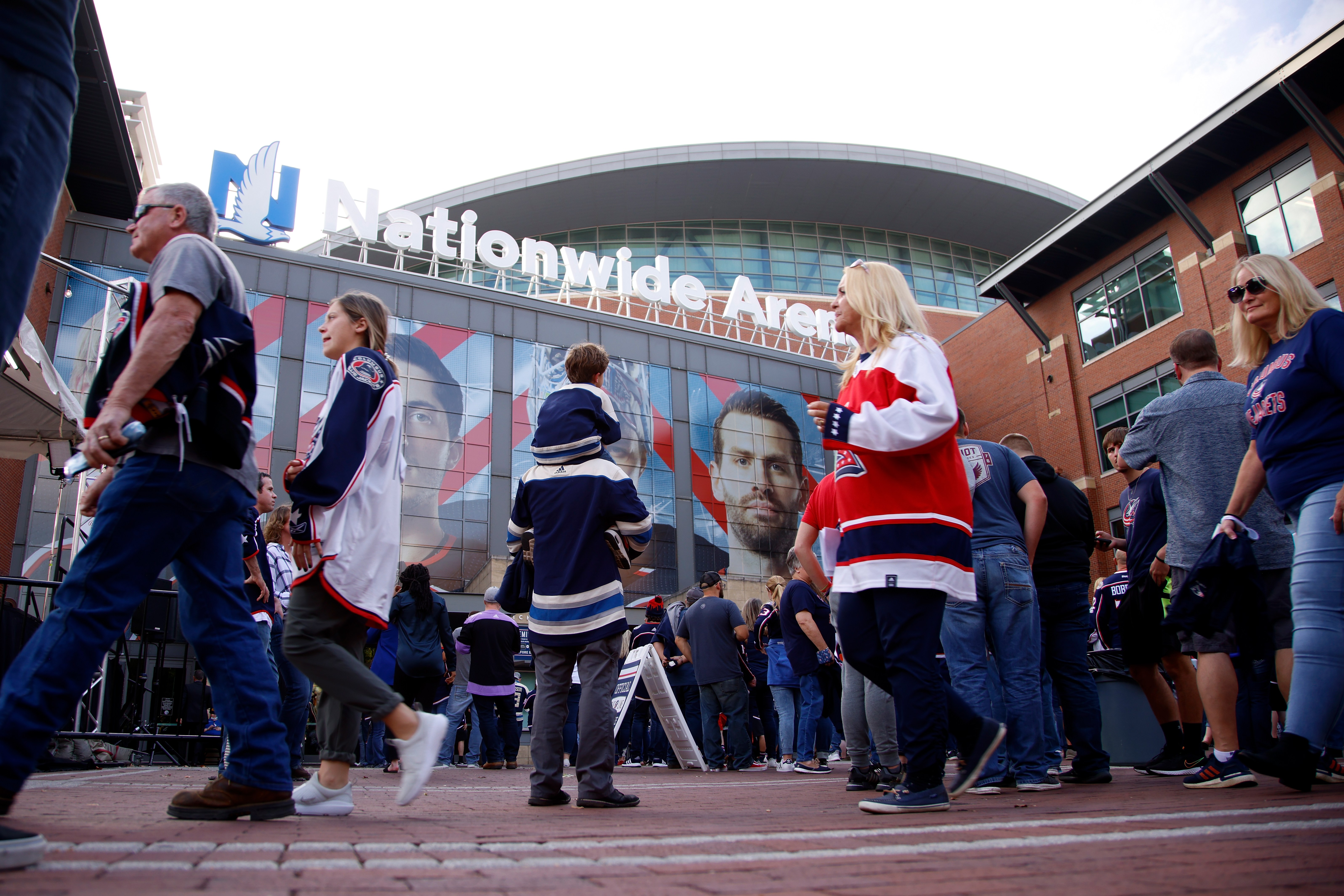 COLUMBUS, OH – OCTOBER 14: Fans line up outside of Nationwide Arena prior to the start of the game between the Columbus Blue Jackets and the Arizona Coyotes at Nationwide Arena on October 14, 2021 in Columbus, Ohio. (Photo by Kirk Irwin/Getty Images)