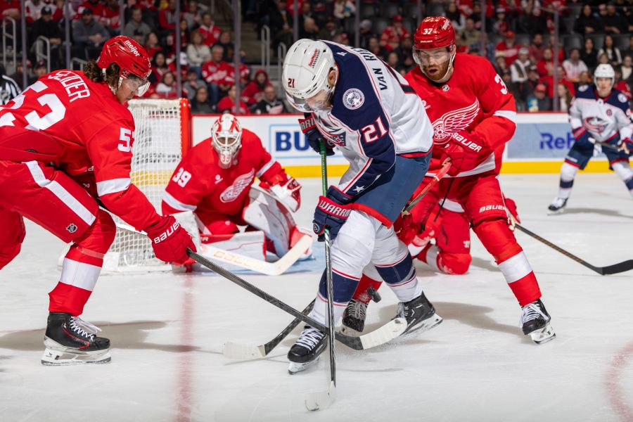 DETROIT (AP) — James van Riemsdyk scored twice and the Columbus Blue Jackets beat the Detroit Red Wings 5-2 on Thursday night in a matchup of playoff contenders.