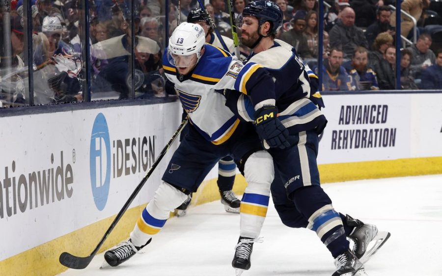 Kyrou tapped in a pass from Robert Thomas on a rush with about 6 1/2 minutes left in the first, and Blais’ tally put the Blues up 3-1 with 1:53 remaining in the period.