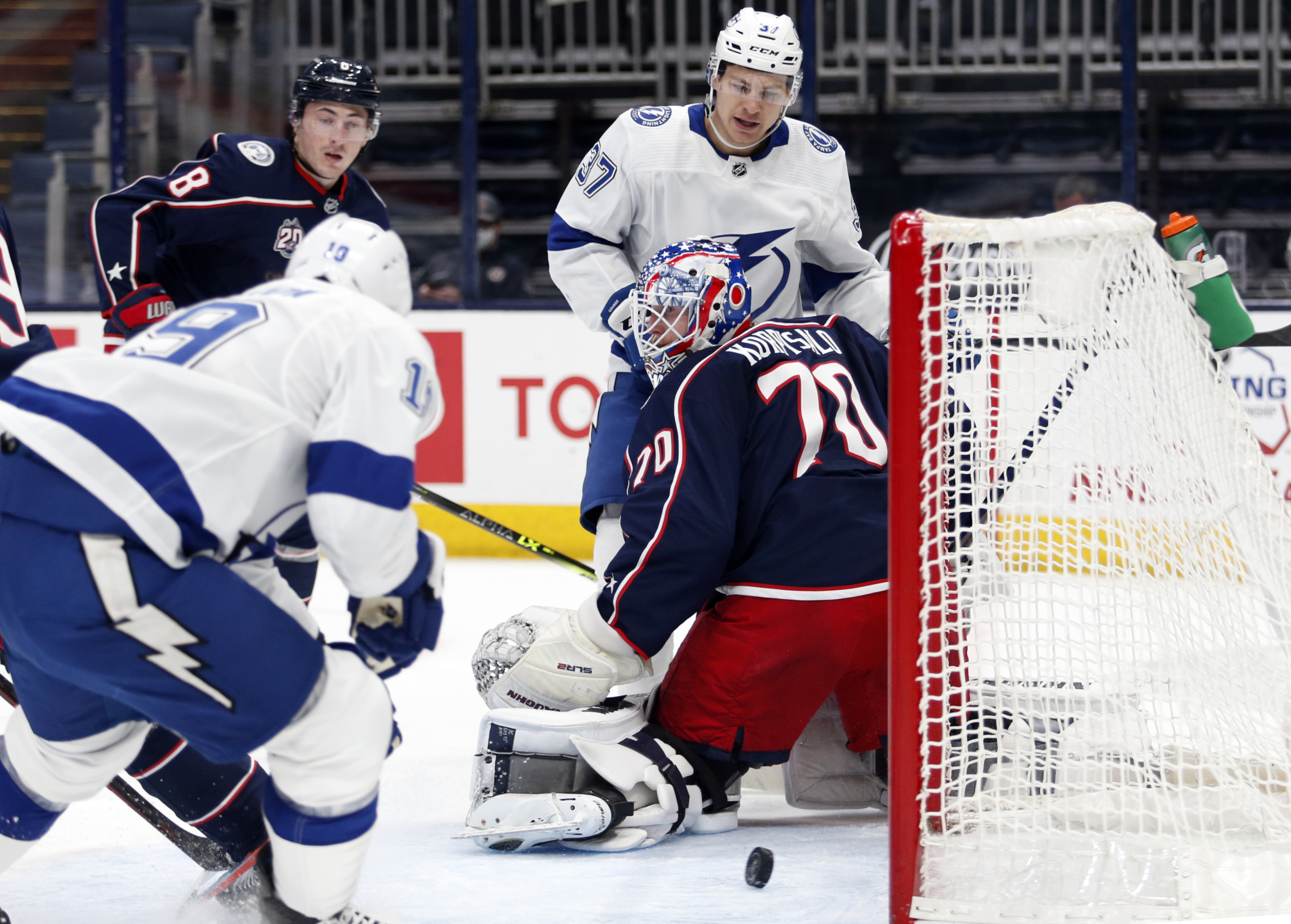 COLUMBUS, Ohio (AP) — Tampa Bay scored three times in the first six minutes of the game and the Lightning cruised to a 6-4 win over the Columbus Blue Jackets. Andrei Vasilevskiy made 32 saves.