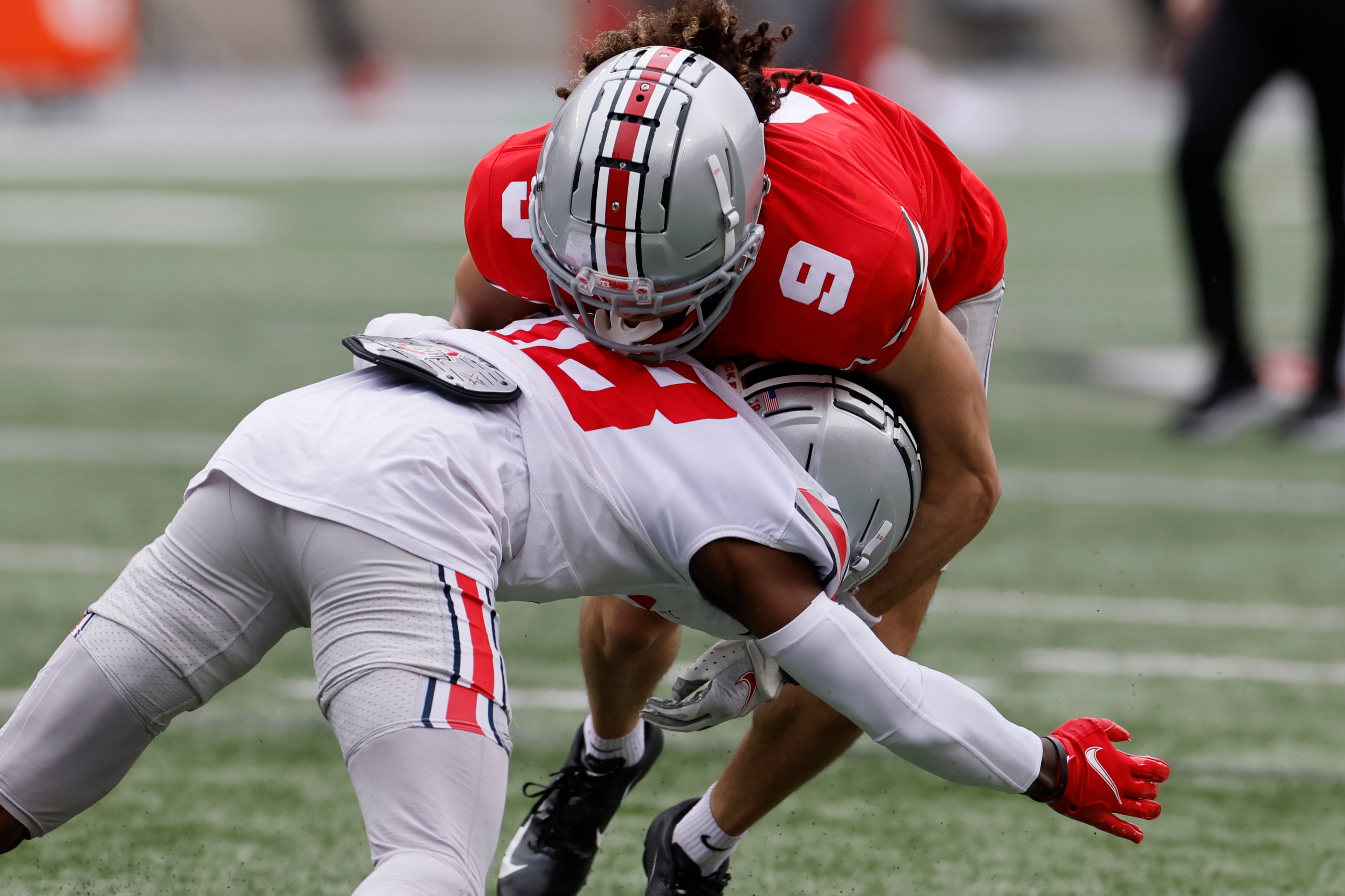 True freshman safety Kye Stokes also impressed with a couple nice plays. He had a pass breakup along the sideline with 47 seconds left in the first half nd broke up another pass from Stroud across the middle of the field that should’ve been an interception. Defensive coordinator Jim Knowles said this will be a safety-driven defense that uses four safeties at a time, so keep an eye out to see if the true freshman can work his way into the rotation this fall.