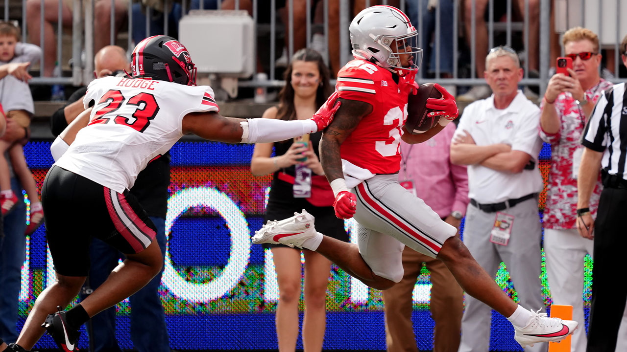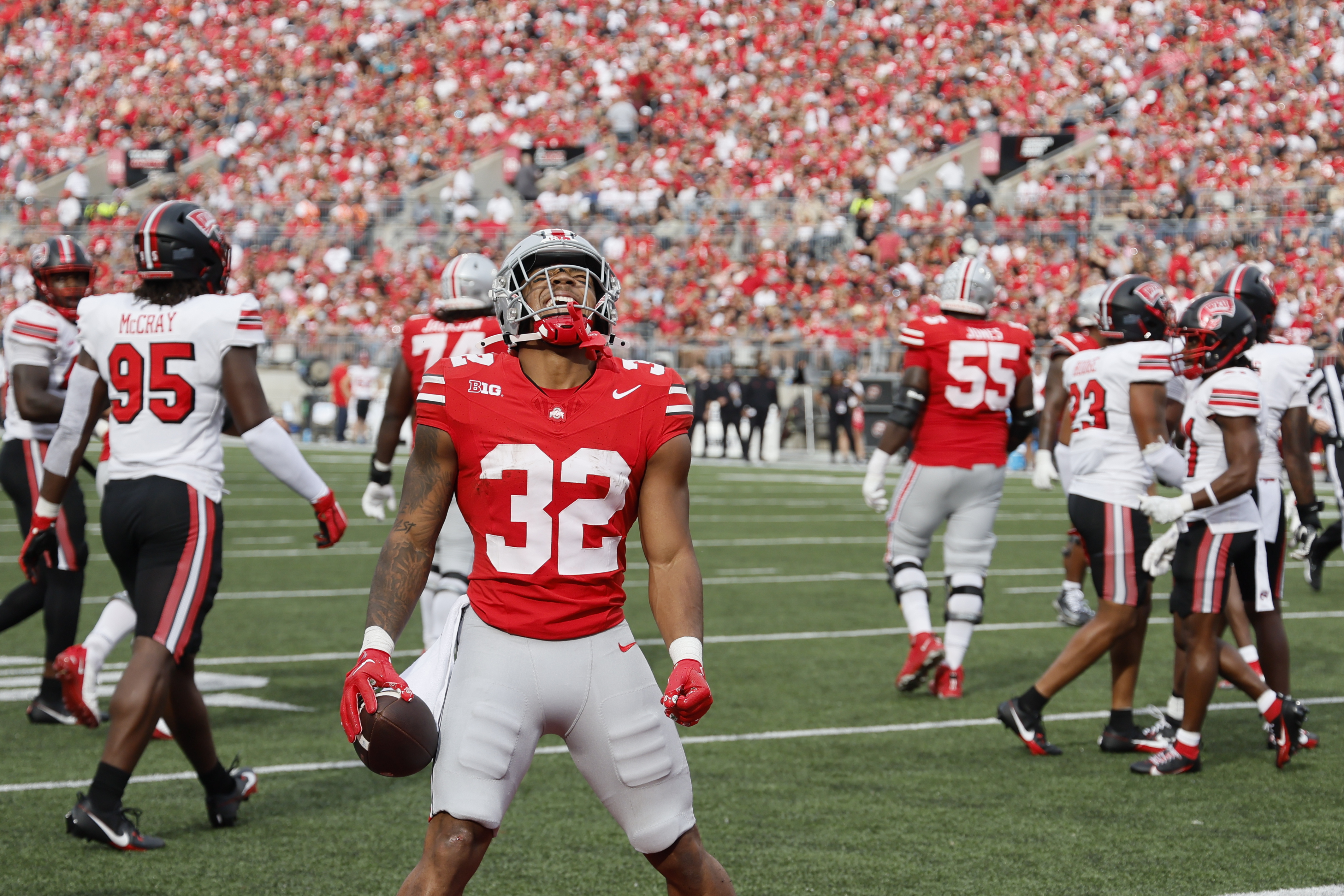 TreVeyon Henderson had his best game of the season with 88 yards on 13 carries and two touchdowns, including a 21-yard score on the first drive of the game. Chip Trayanum also added a 40-yard touchdown in the win. OSU’s ability to win at the line of scrimmage will be an emphasis against No. 9 Notre Dame in South Bend next week.