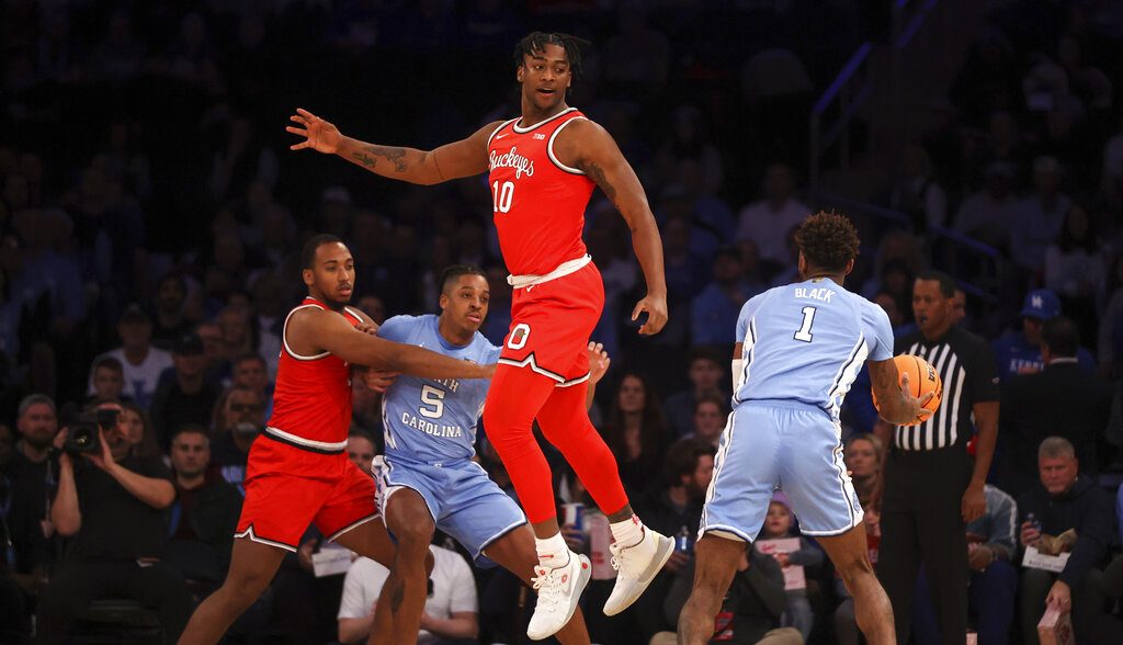 Ohio State led by as many as 12 in the first half as the Tar Heels were going 1 for 9 from 3-point range. Bacot pulled the Tar Heels back within six, scoring 14 points and having his way in the paint.