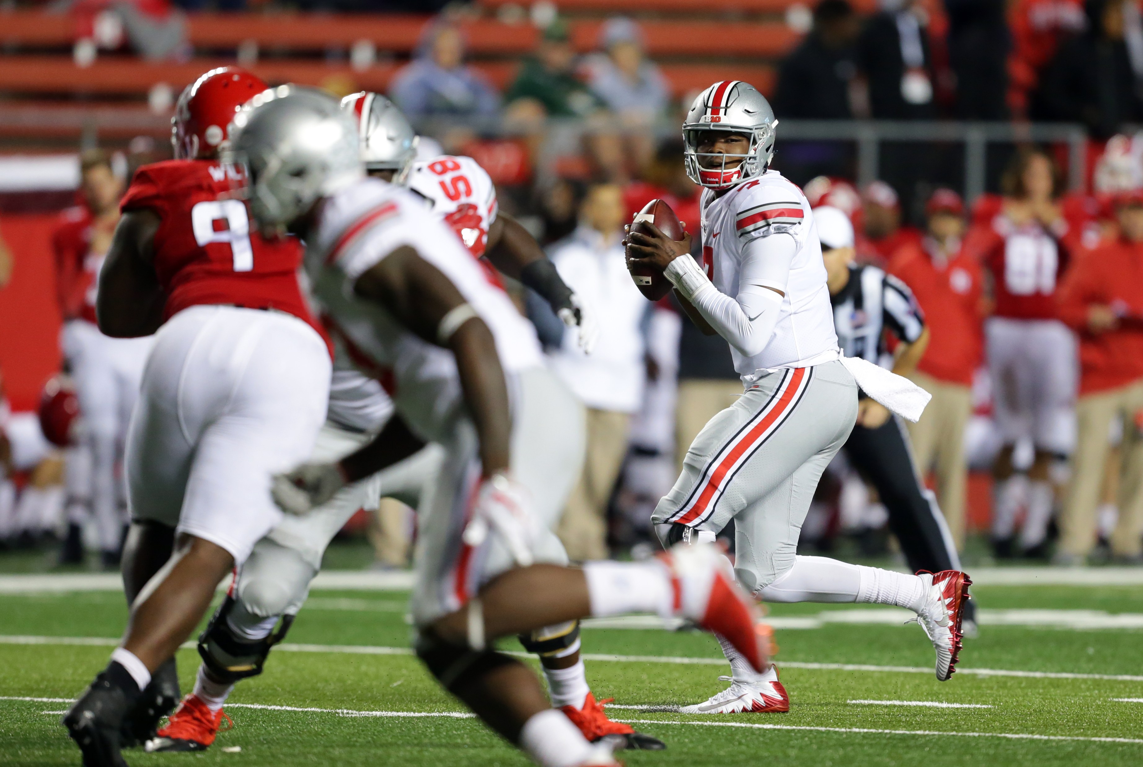 PISCATAWAY, NJ – SEPTEMBER 30: J.T. Barrett #16 of the Ohio State Buckeyes during a game against the Rutgers Scarlet Knights on September 30, 2017 at High Point Solutions Stadium in Piscataway, New Jersey. Ohio State won 56-0. (Photo by Hunter Martin/Getty Images)