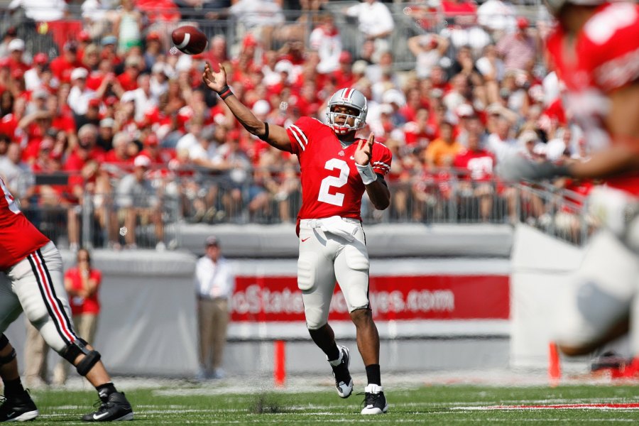 Pryor started at quarterback as a true freshman, the first time that had happened since 1978. He threw four touchdowns passes, including two to current Ohio State receivers coach Brian Hartline, in front of 102,000 fans.