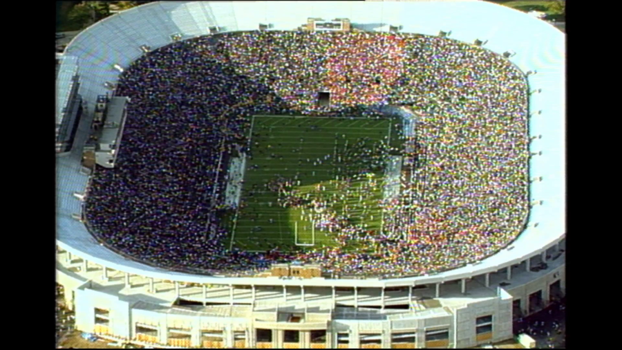Cooper’s Buckeyes could not be stopped by coach Lou Holtz’s Irish defense. Quarterback Bobby Hoying threw four touchdown passes and running back Eddie George scored two TDs of his own on his way to the Heisman Trophy.