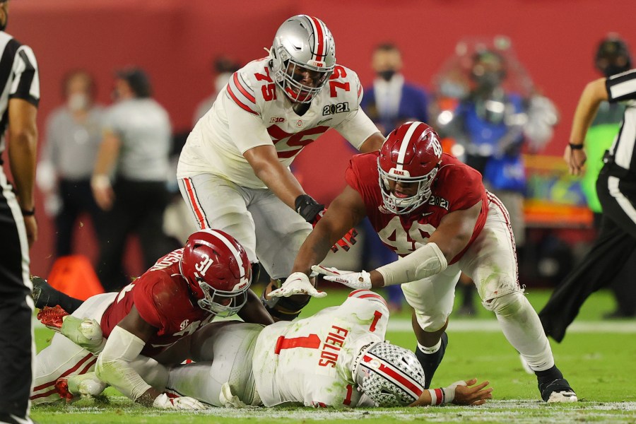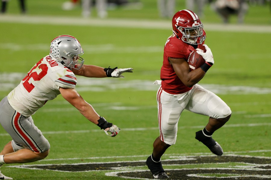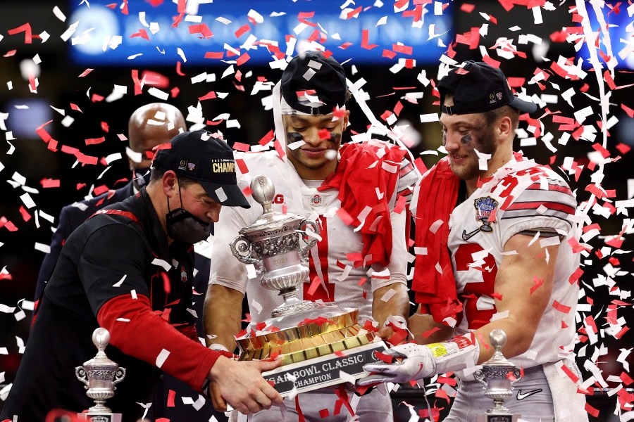 In the COVID-19-shortened season, the Buckeyes made the national title game in Miami to play an Alabama team that had five extra games under its belt. An even first quarter was as close as the game got when Alabama and Heisman-winning receiver DeVonta Smith punched hard at the Buckeyes’ defense in the second.