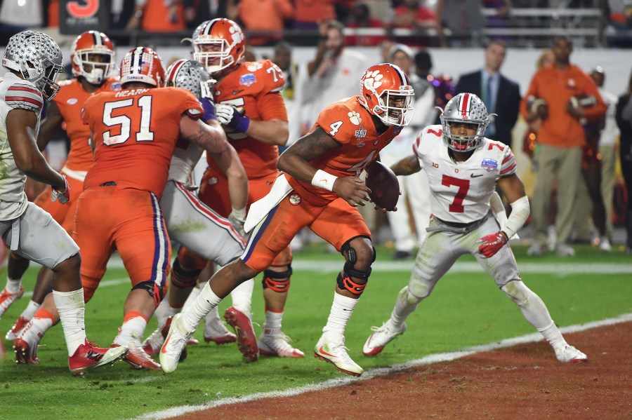 After going down 17-0 at halftime, the Buckeyes still couldn’t get past a stalwart Clemson defense that allowed only 215 yards. The game, in Glendale, Arizona, catapulted Clemson to its signature national title win over Alabama a week later.