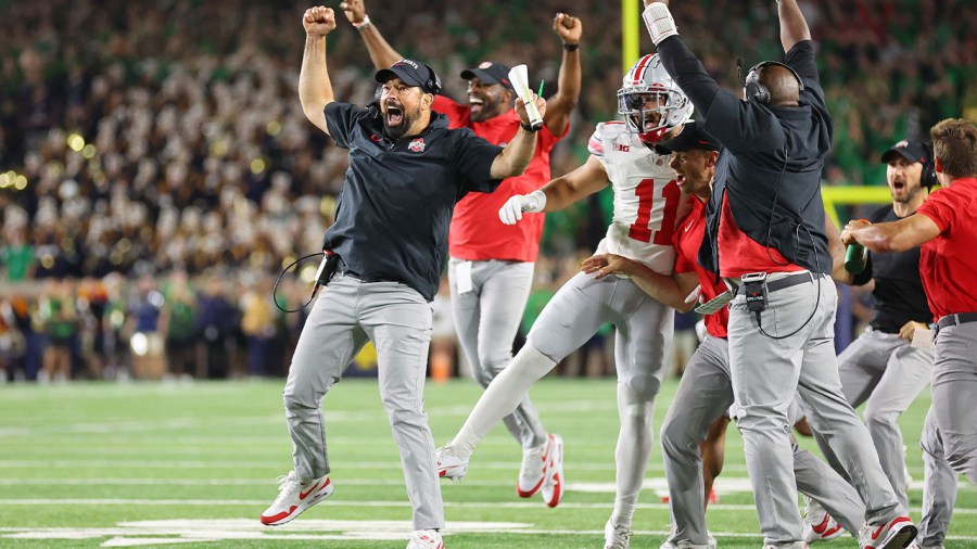 Ohio State pulled out a win thanks to a last-minute touchdown against Notre Dame. Kyle McCord completed five passes for 73 yards, culminating in a one-yard touchdown in the final second.