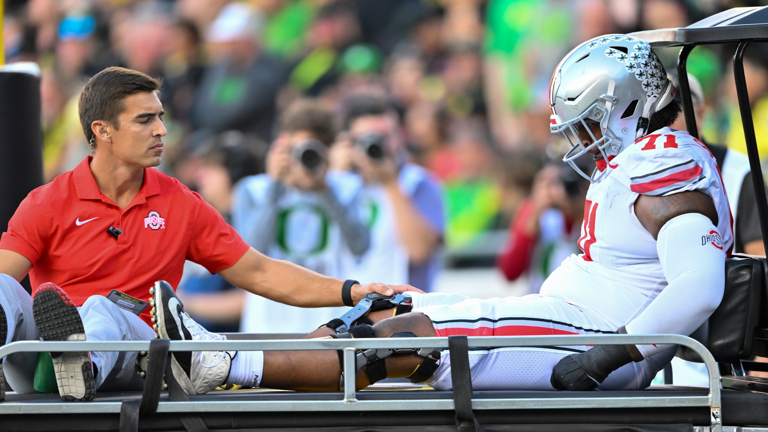 EUGENE, Ore. (WCMH) — The Buckeyes depth was tested Saturday night against Oregon on their offensive line. Ohio State lost two of its starters, with one player carted off the field while another returned in the second half.