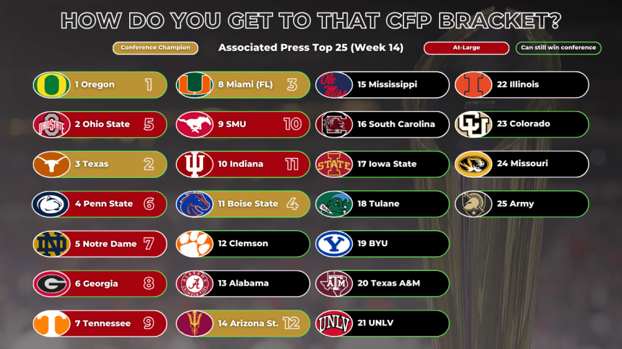 Using the Week 14 rankings, the Buckeyes would host Arizona State in a first round playoff game on Dec. 20 or Dec. 21. The winner would face No. 4 seed Boise State in the Fiesta Bowl on New Year’s Eve.