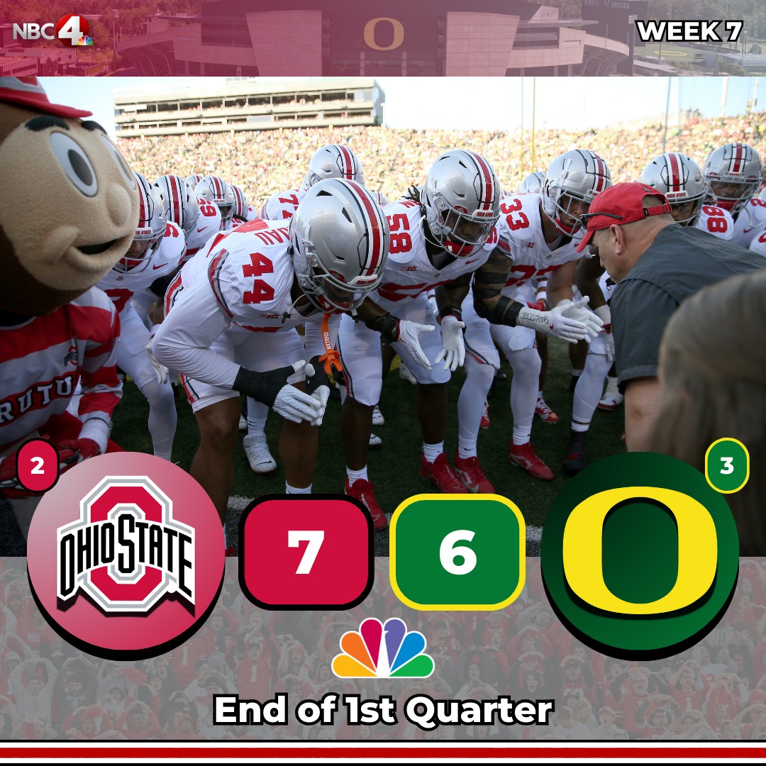 Ohio State leads 7-6 after the first 15 minutes but the Buckeyes are on the doorstep to begin the second quarter after TreVeyon Henderson’s 53-yard gain to the four-yard line.