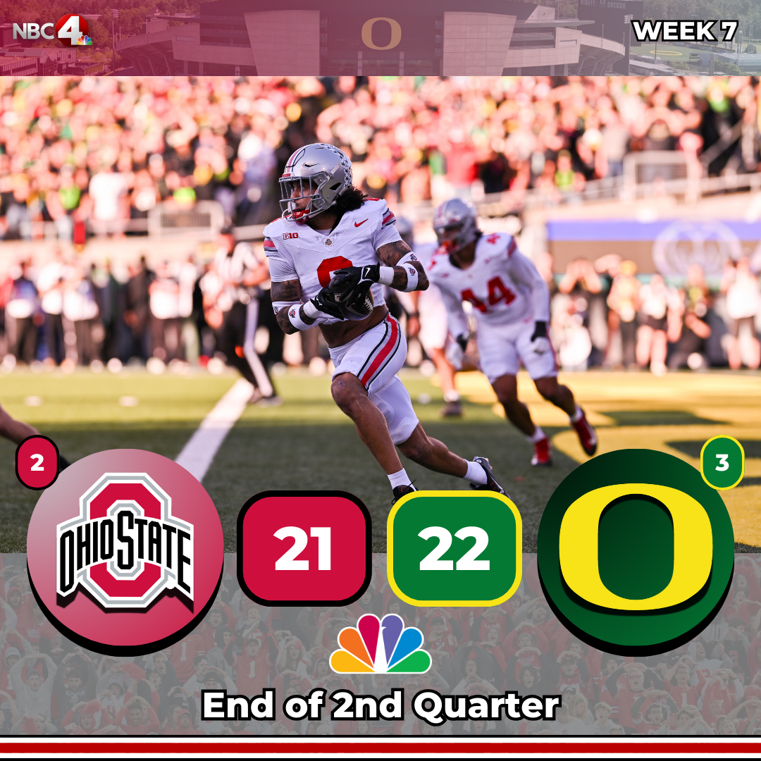 EUGENE, Ore. (WCMH/AP) — In one of the most highly anticipated contests on the college football schedule this season, Ohio State suffered its first loss of the season after a back-and-forth battle with Oregon, falling 32-31, at Autzen Stadium.