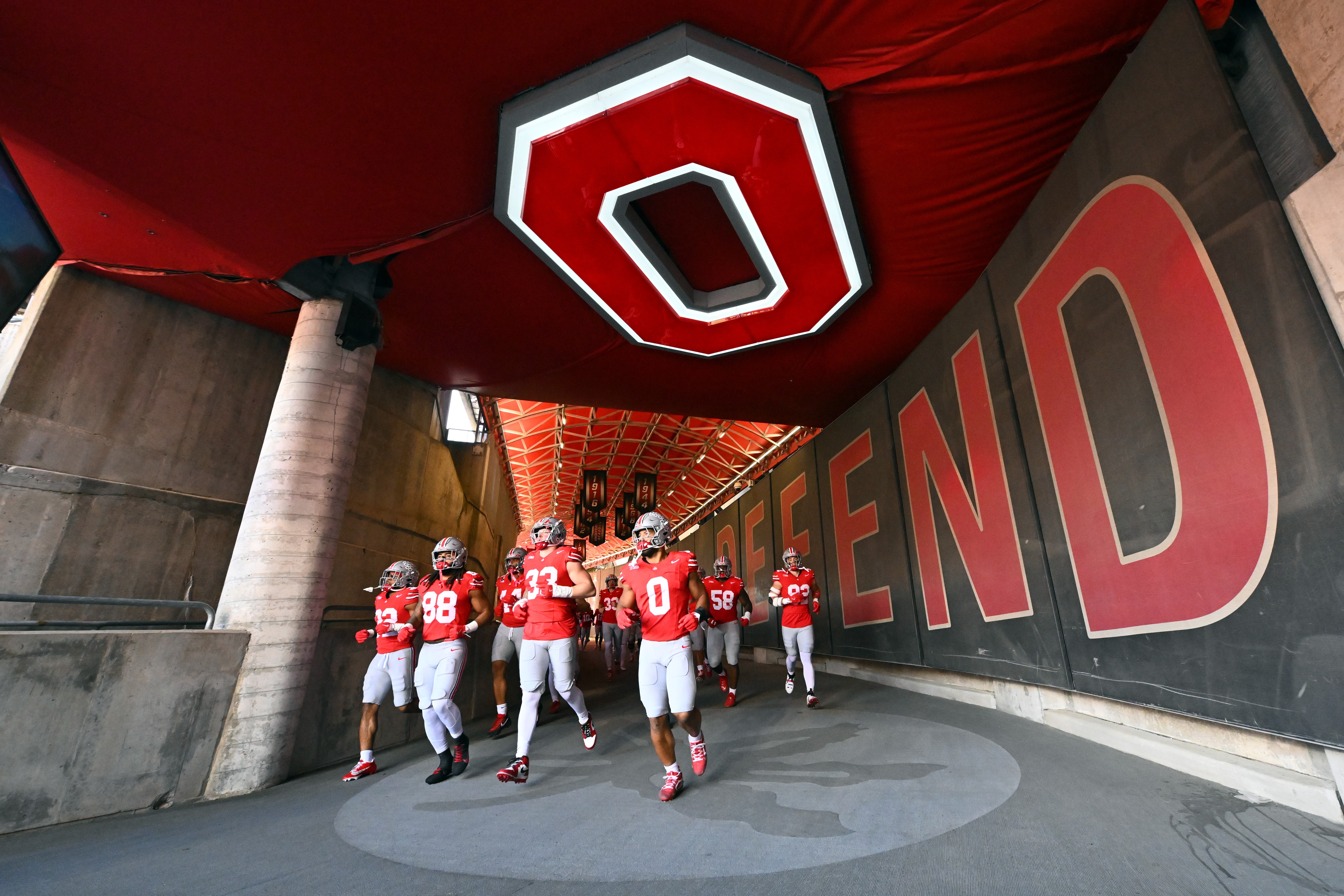 COLUMBUS, OHIO – NOVEMBER 09: The Ohio State Buckeyes take the field for pregame warmups prior to a game against the Purdue Boilermakers at Ohio Stadium on November 09, 2024 in Columbus, Ohio. (Photo by Ben Jackson/Getty Images)