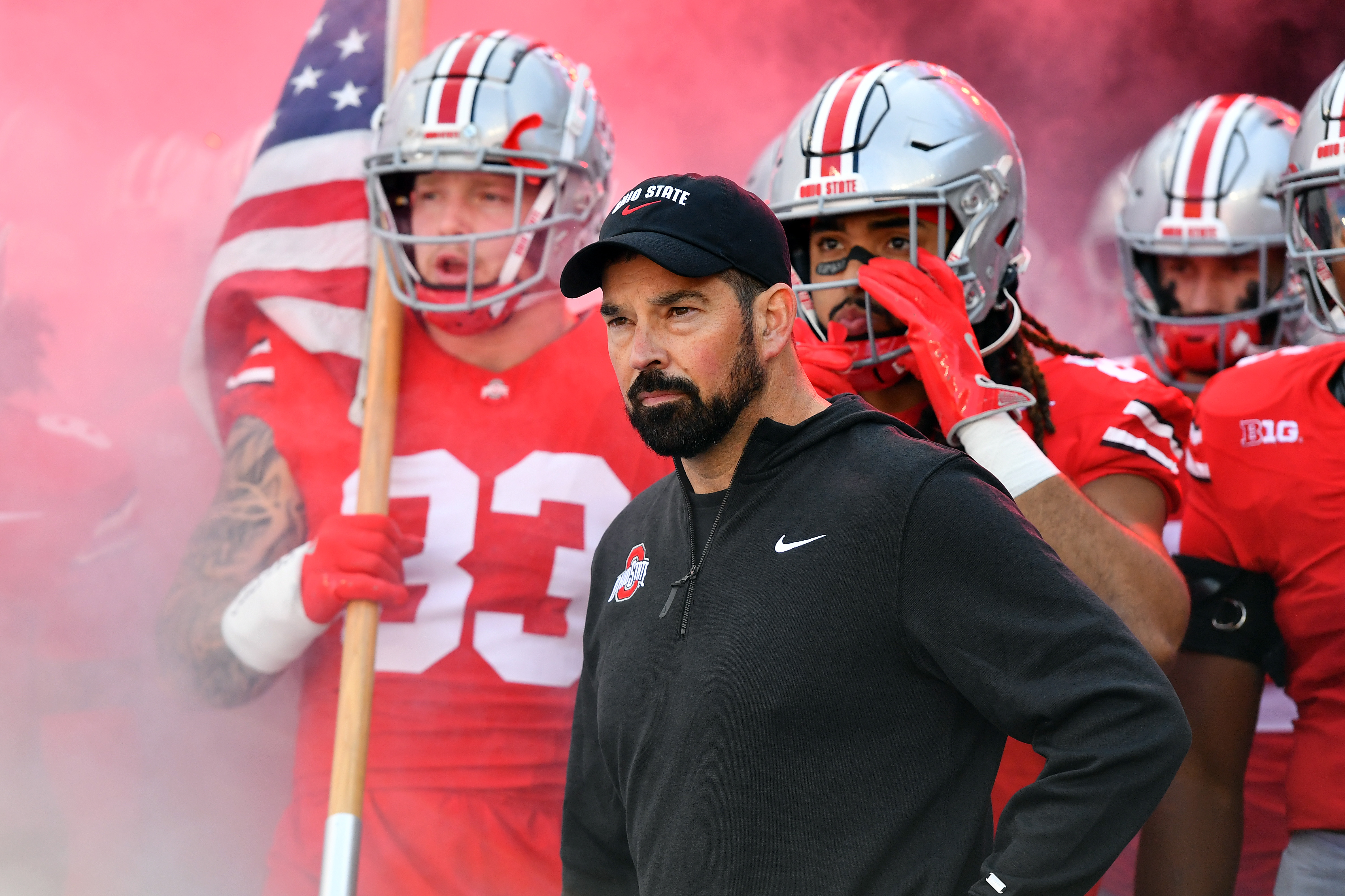 COLUMBUS, OHIO – NOVEMBER 09: Head coach Ryan Day of the Ohio State Buckeyes enters Ohio Stadium prior to a game against the Purdue Boilermakers on November 09, 2024 in Columbus, Ohio. (Photo by Ben Jackson/Getty Images)