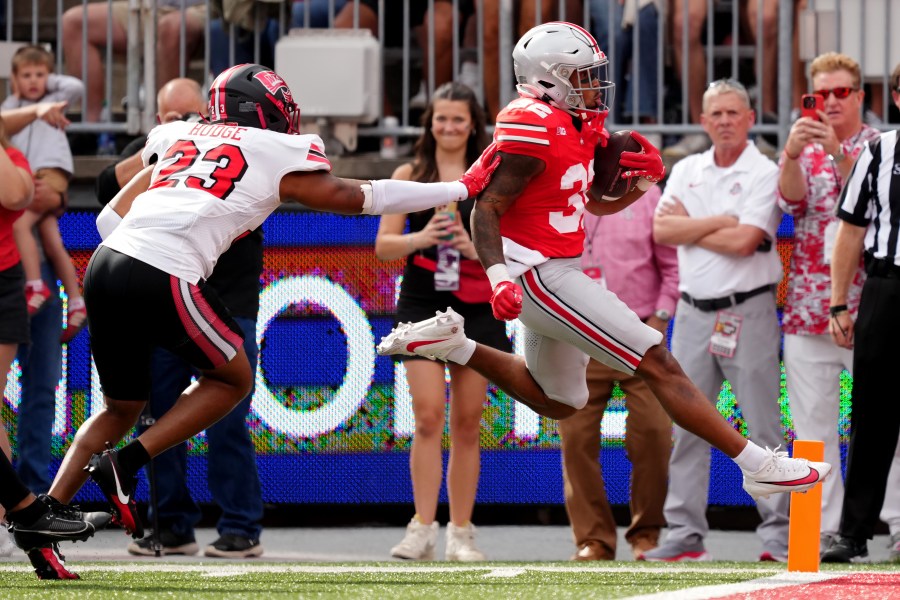 COLUMBUS, Ohio (WCMH) — No. 6 Ohio State beat Western Kentucky 63-10 behind three Kyle McCord touchdowns, three rushing touchdowns and two scores by the Buckeyes’ defense.