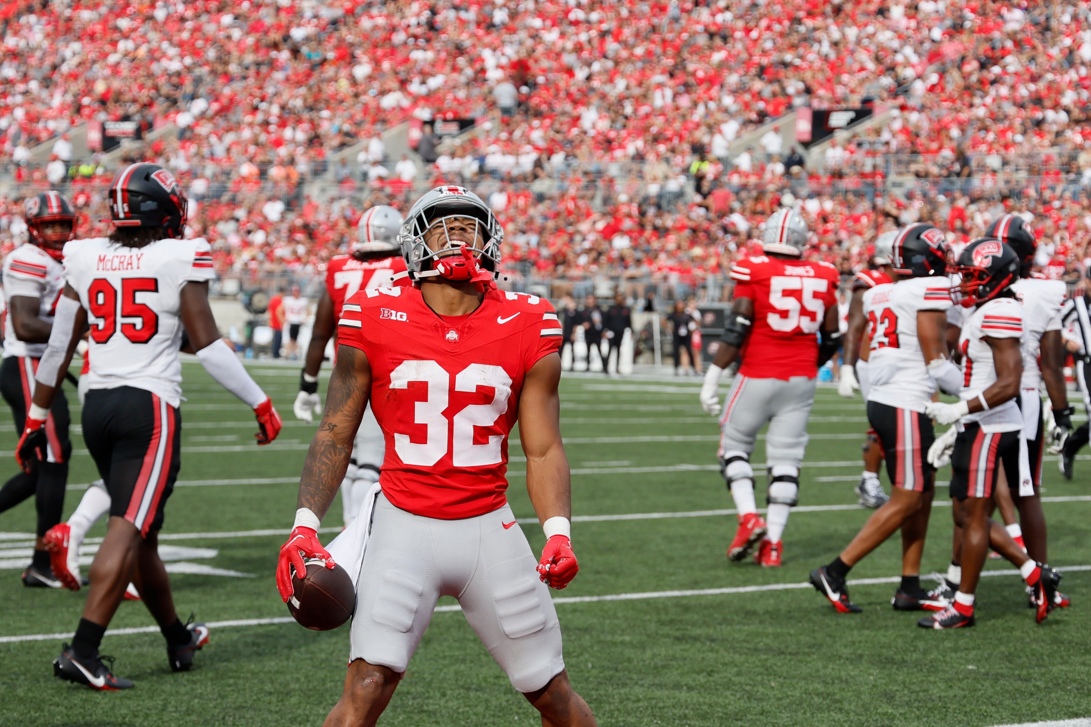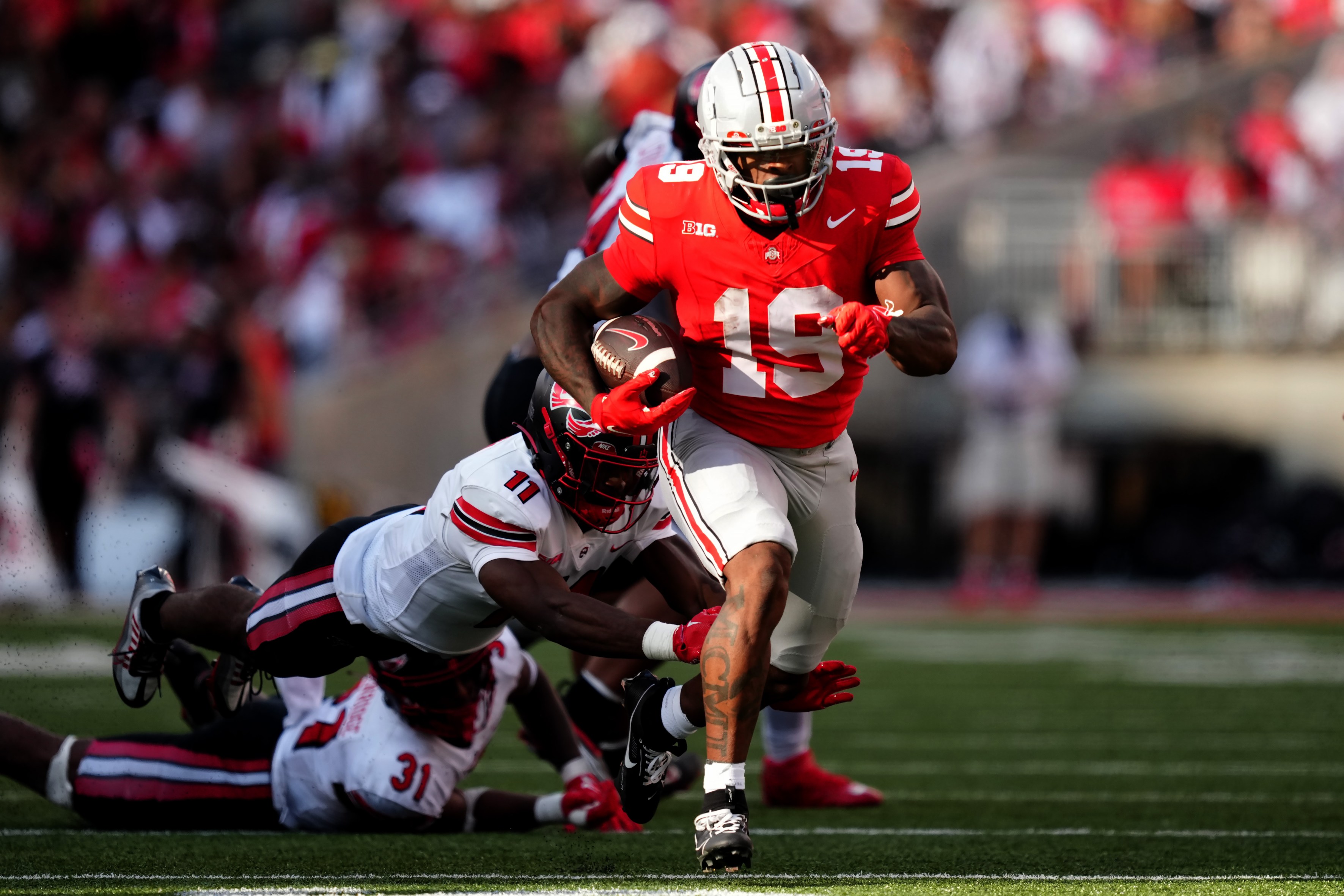 COLUMBUS, Ohio (WCMH) — No. 6 Ohio State beat Western Kentucky 63-10 behind three Kyle McCord touchdowns, three rushing touchdowns and two scores by the Buckeyes’ defense.