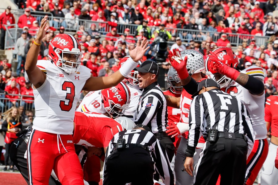 - Ohio State’s defense bends but doesn’t break on a goal line stand. Maryland settles for a short field goal and leads 10-0 with 12:56 left in the second quarter