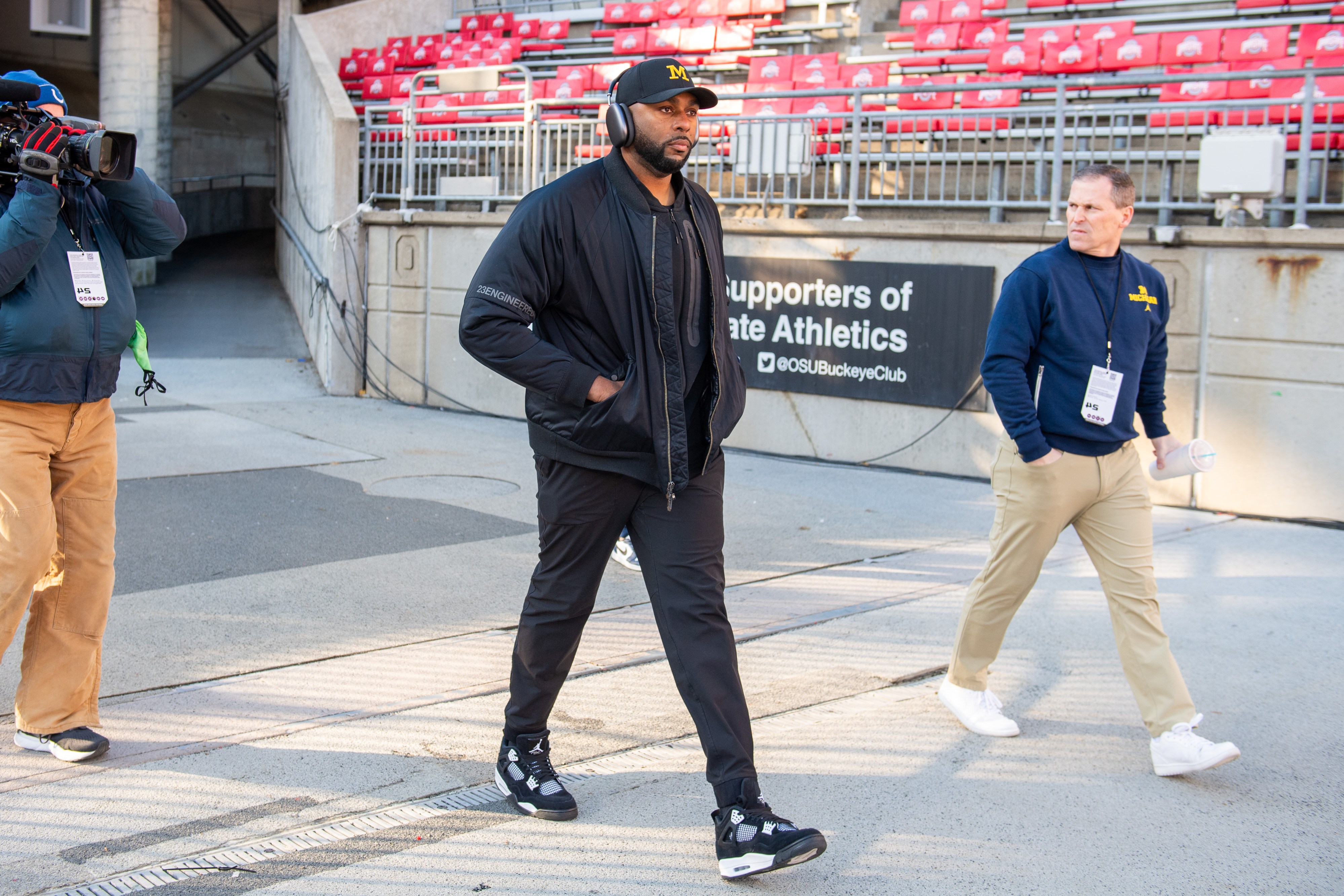 COLUMBUS, OHIO – NOVEMBER 30: Head Coach Sherrone Moore of the Michigan Wolverines walks onto the field before a college football game against the Ohio State Buckeyes at Ohio Stadium on November 30, 2024 in Columbus, OH. (Photo by Aaron J. Thornton/Getty Images)