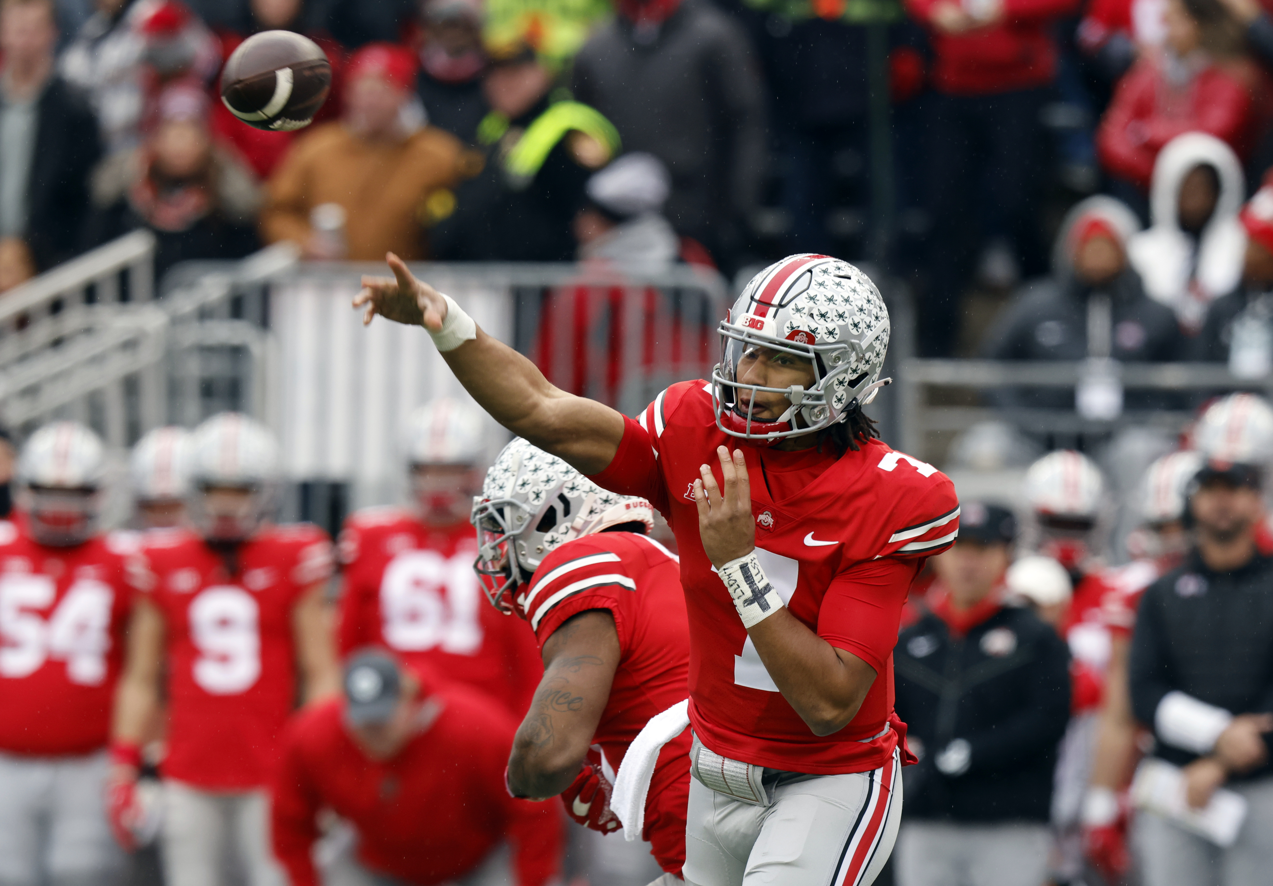 COLUMBUS, OHIO – NOVEMBER 12: C.J. Stroud #7 of the Ohio State Buckeyes throws the ball during the second quarter of a game against the Indiana Hoosiers at Ohio Stadium on November 12, 2022 in Columbus, Ohio. (Photo by Ben Jackson/Getty Images)