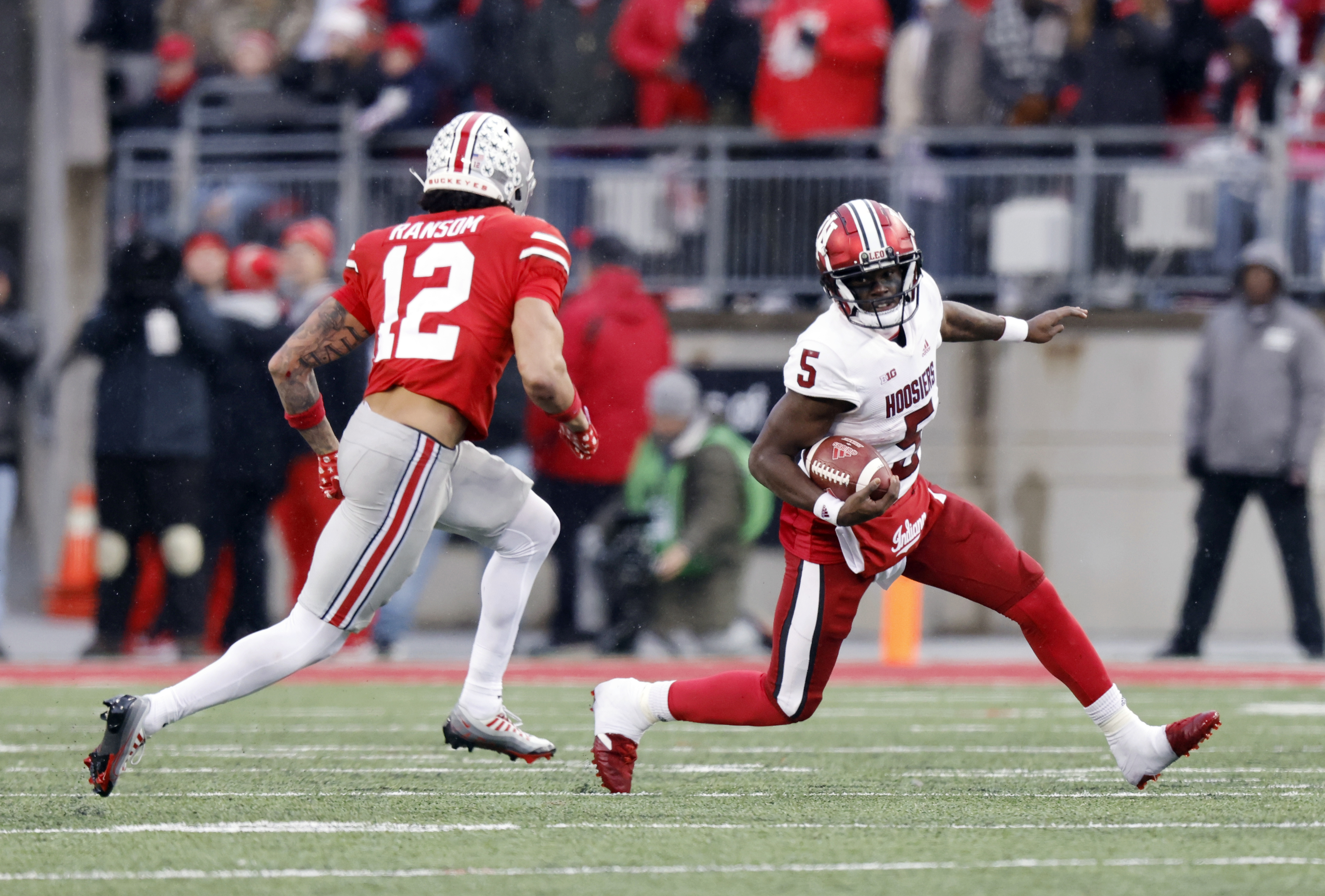 Hayden had consecutive runs that netted nine yards, but a Stroud run on zone read was stopped for no gain and the Buckeyes were forced to punt. Mirco booted it 45 yards and put Indiana at its own 23-yard line with 11:25 remaining in the quarter.