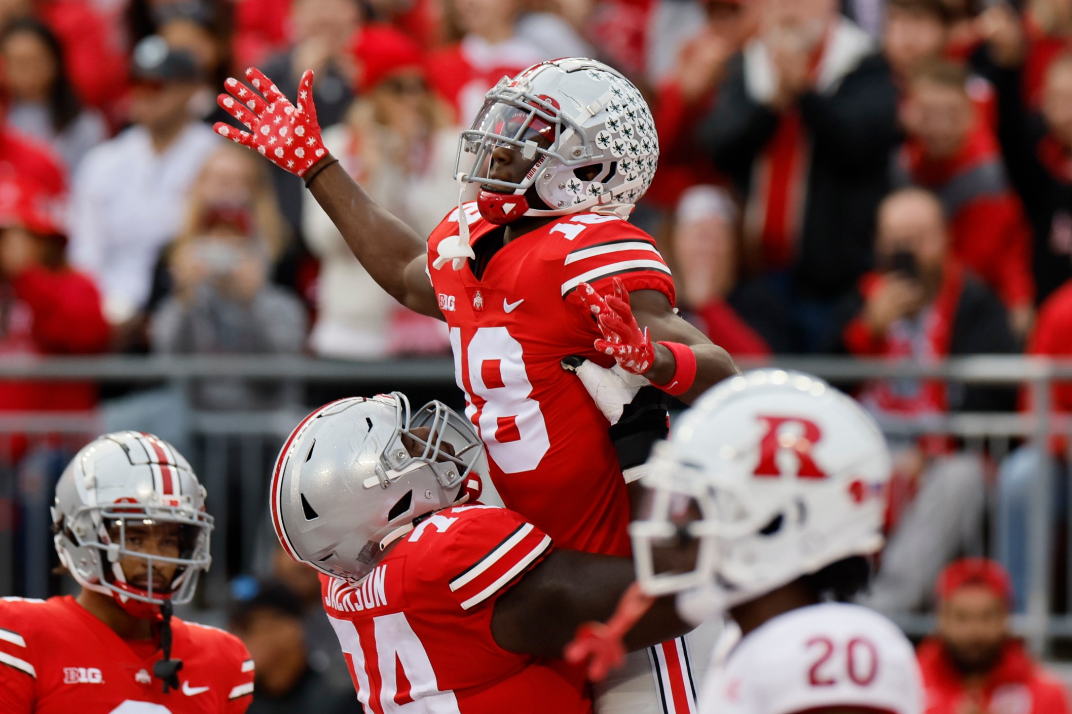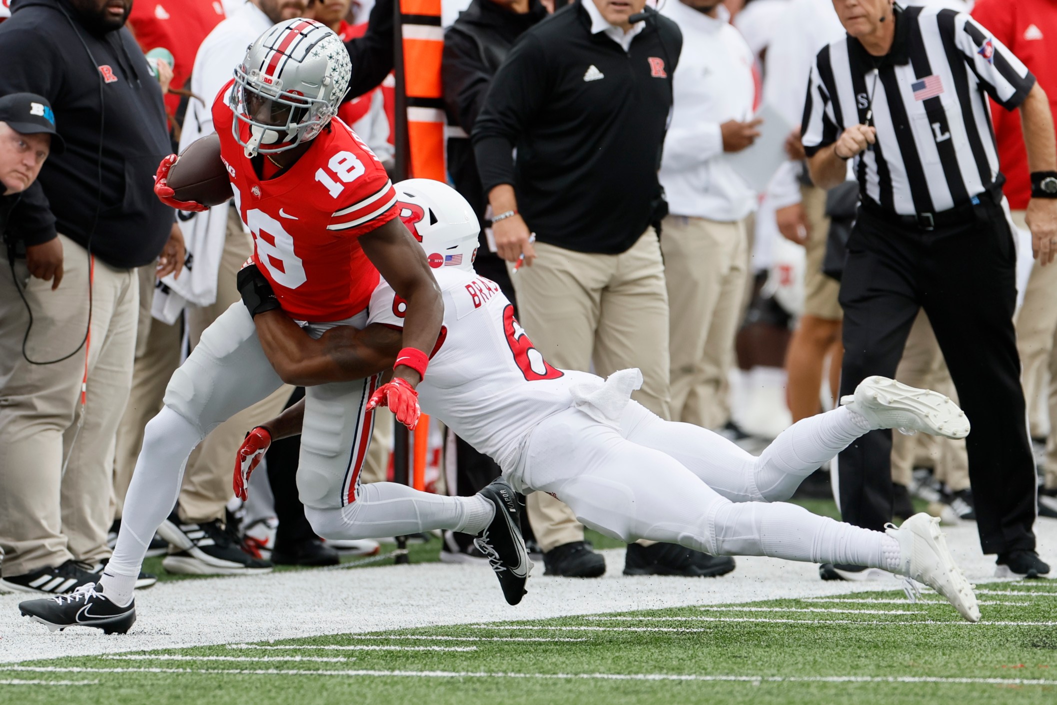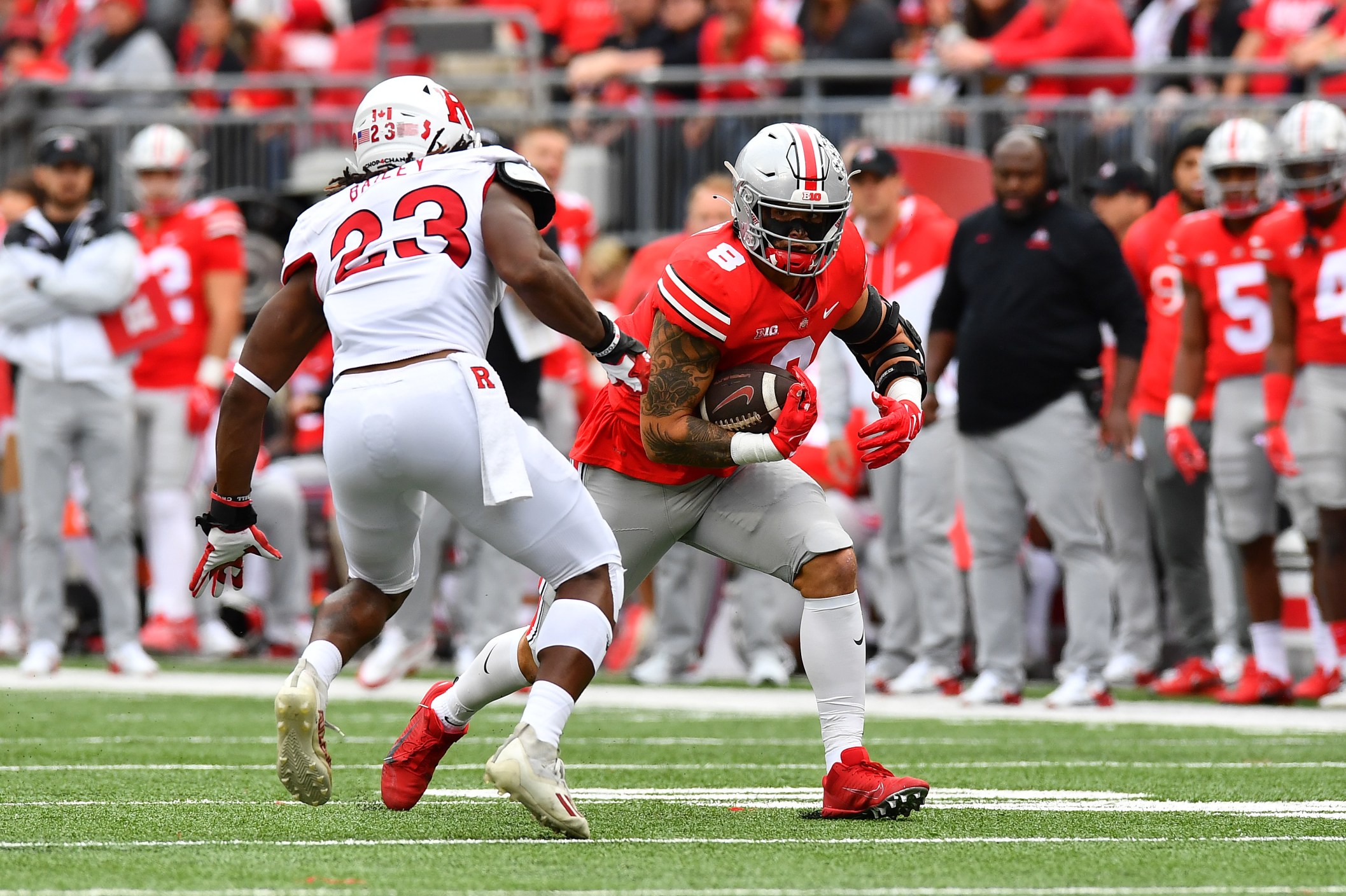 Ohio State got the ball at its 26-yard line following a three and out series from Rutgers. and converted a third-and-8 with a 27-yard strike from CJ Stroud to Egbuka, and they connected again on second-and-10 to take the ball down to the Rutgers 15. Marvin Harrison Jr. nearly got in on a reverse, getting pushed out inside the one.
