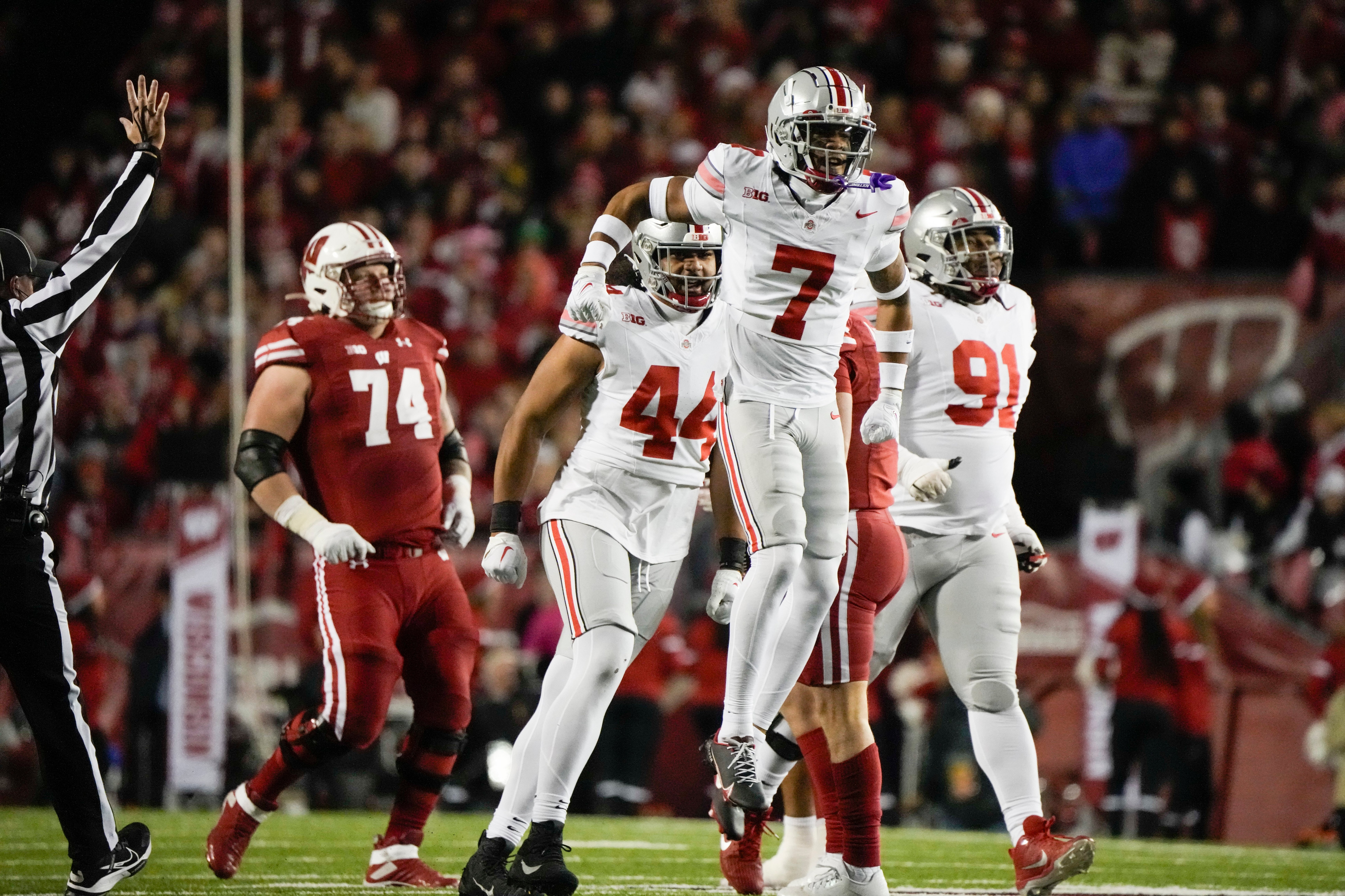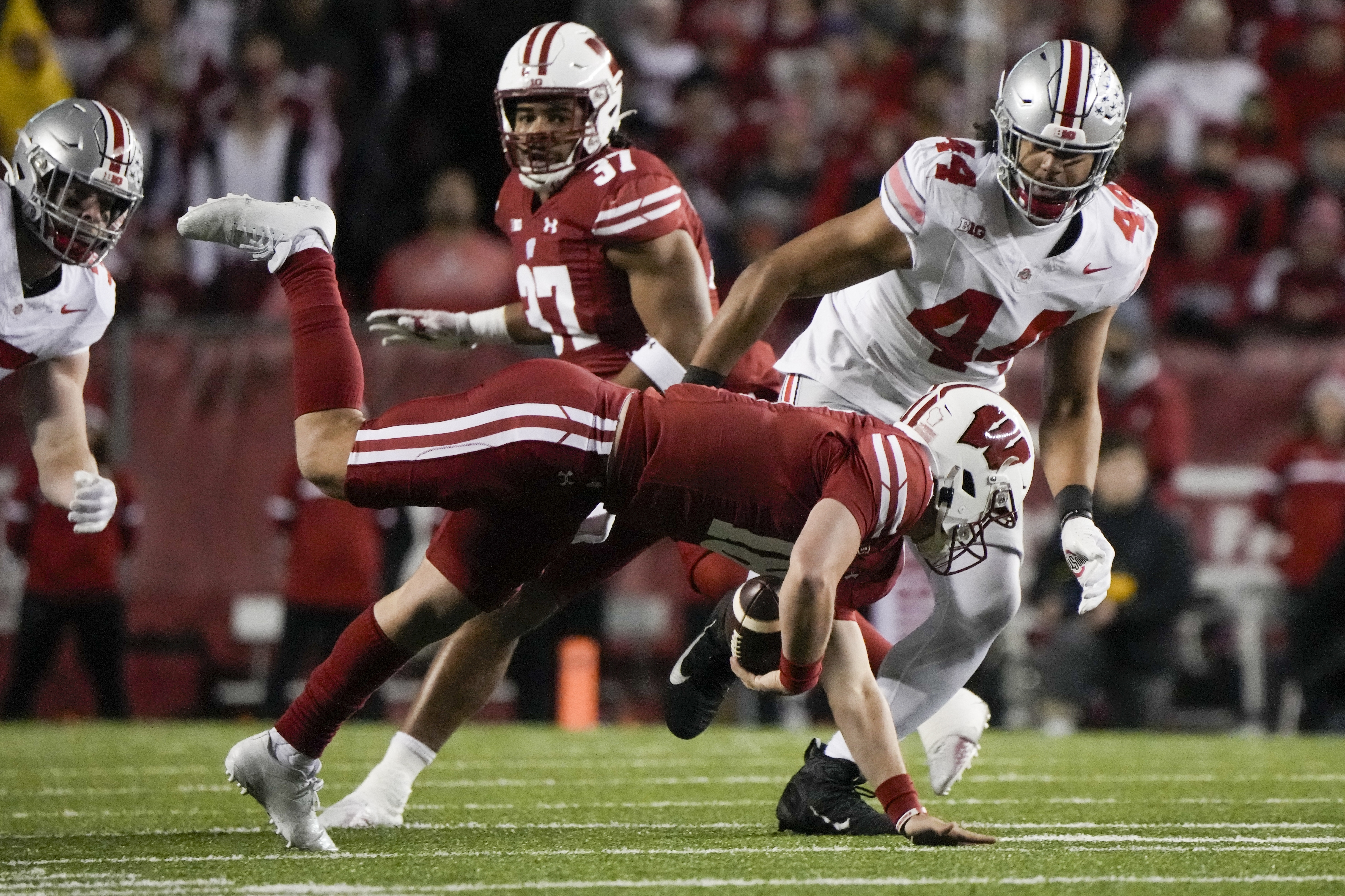 • Ohio State had a brilliant start on defense, with Wisconsin’s Braelon Allen rushing up the middle and gaining 11 yards before fumbling. Jack Sawyer forced the fumble, and Davison Igbinosun recovered.