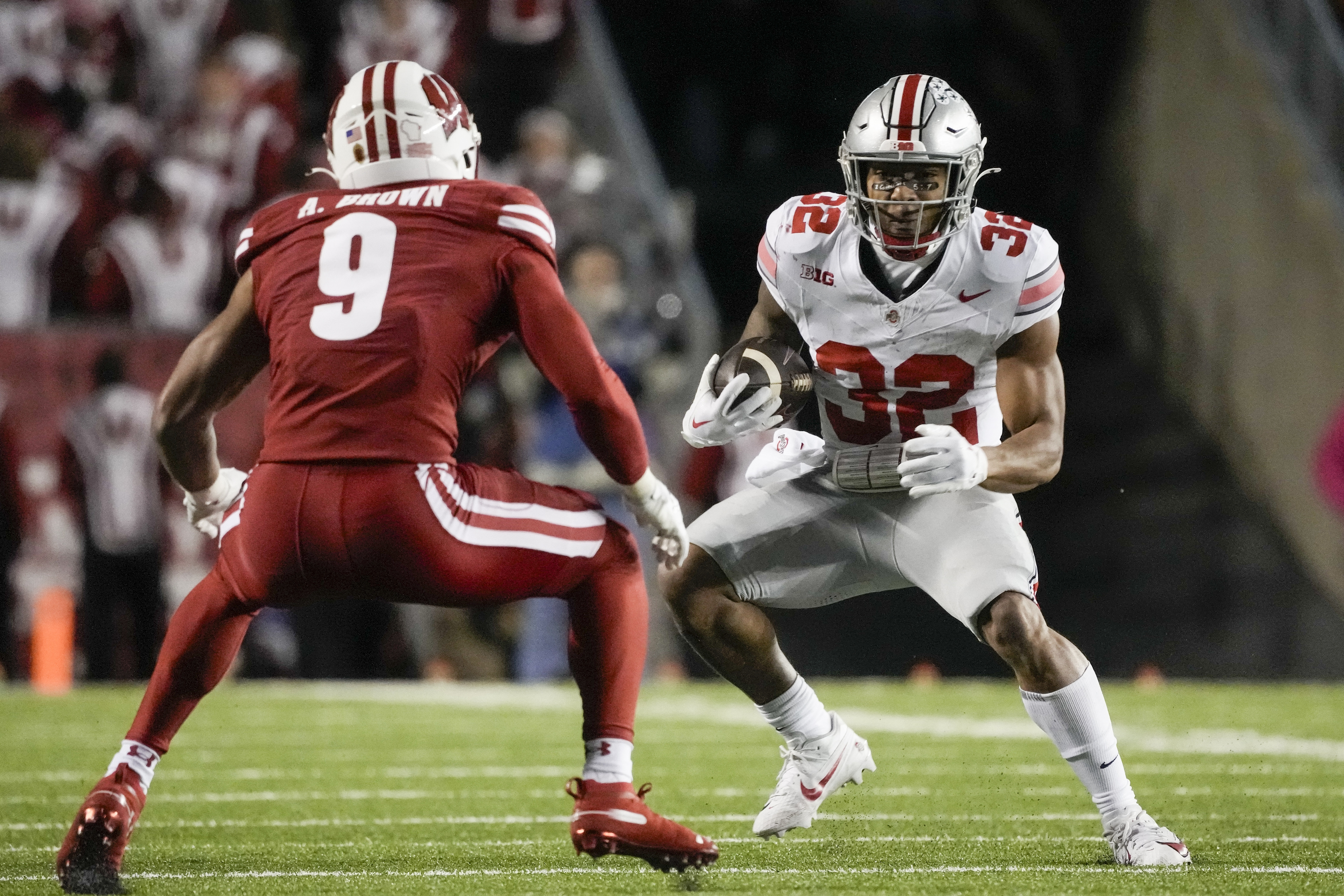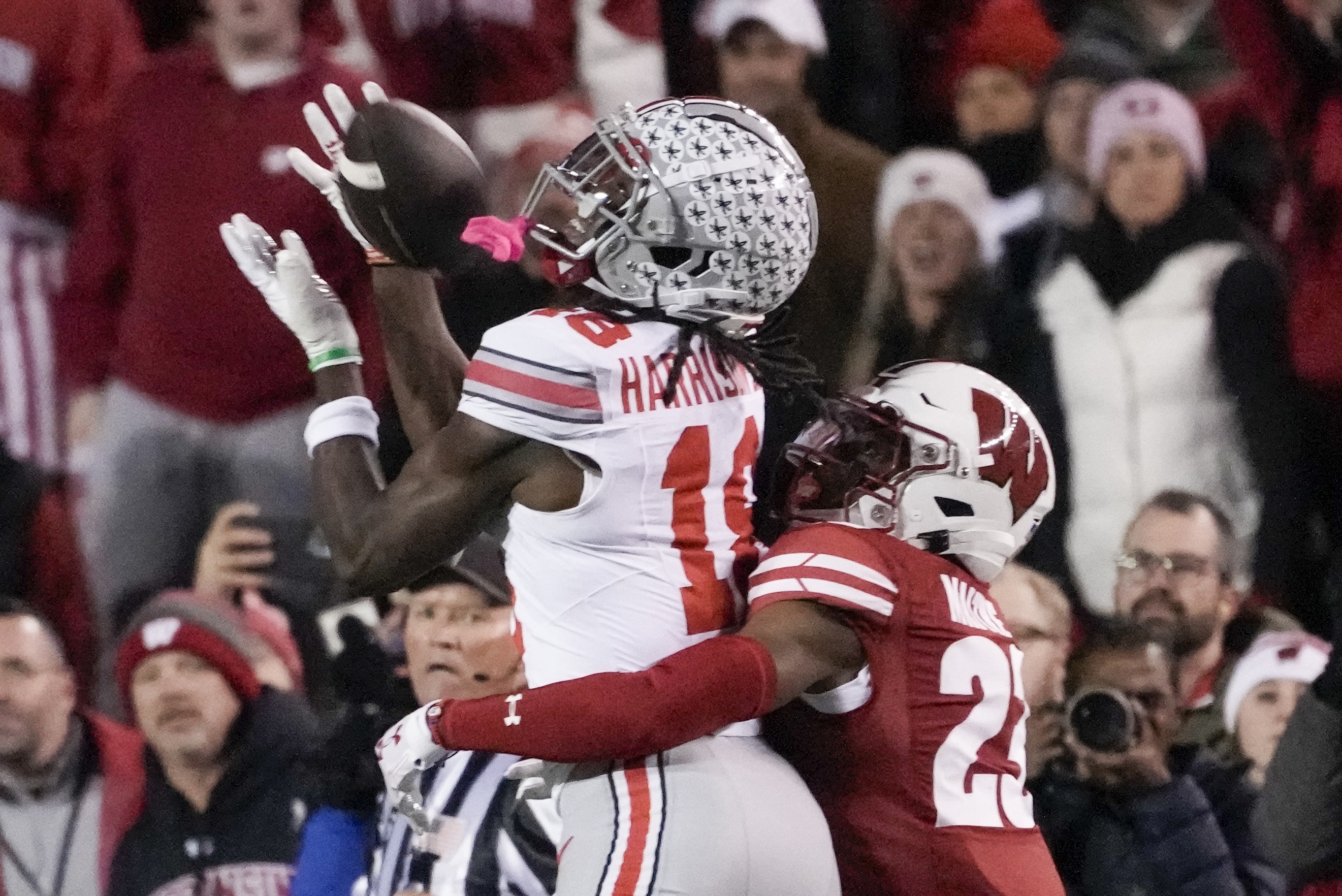 Harrison caught two touchdown passes from Kyle McCord and Henderson bulldozed for 162 yards and one touchdown, leading the third-ranked Buckeyes to a 24-10 win over the Badgers at Camp Randall Stadium.