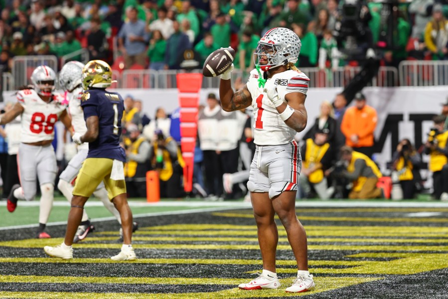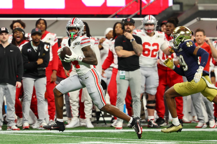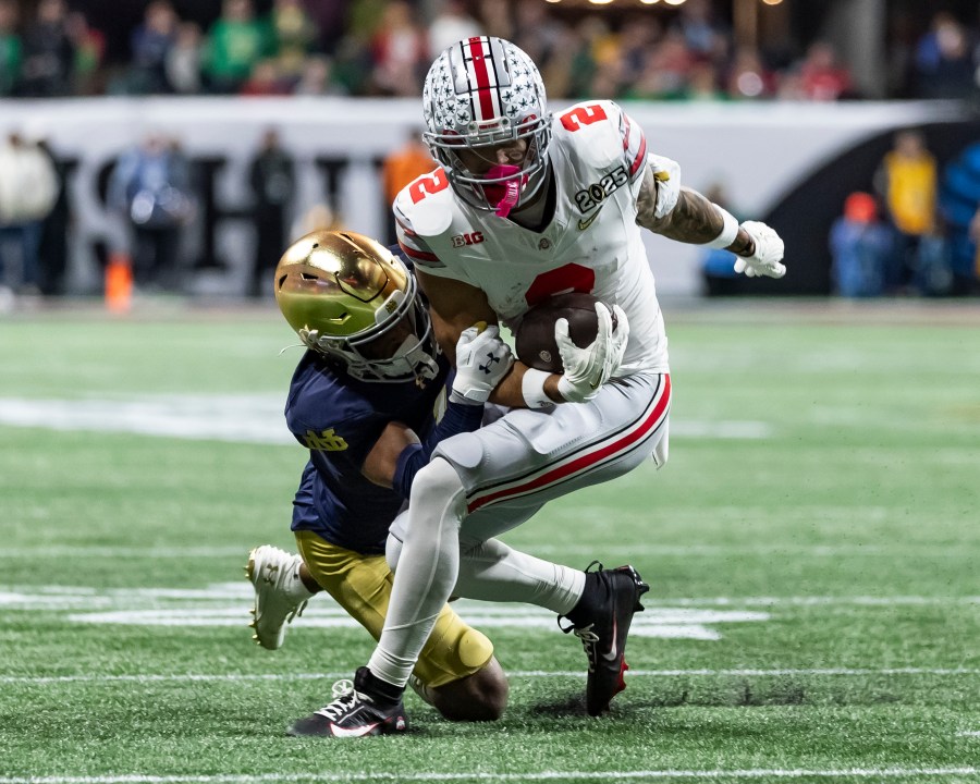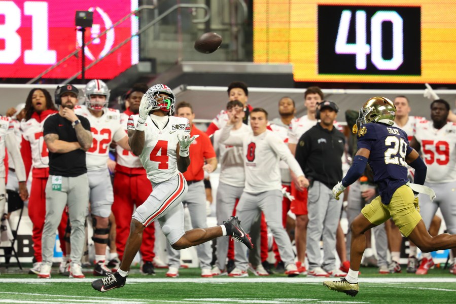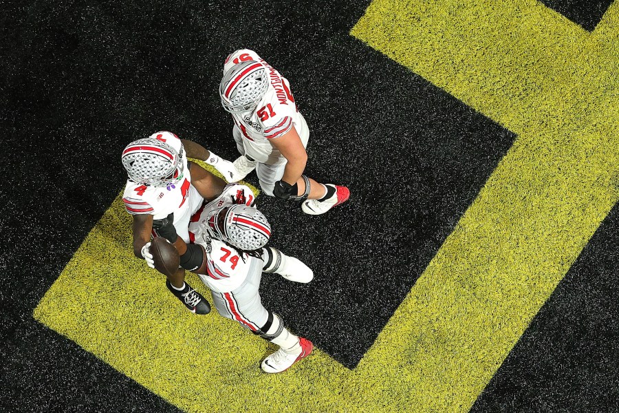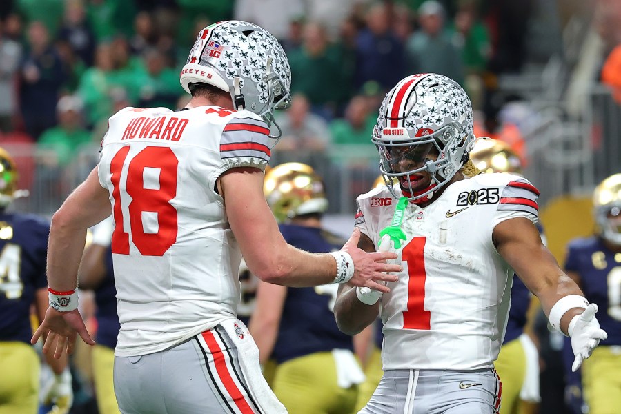 Quarterback Will Howard set a playoff championship game record by completing his first 13 passes. Receiver Emeka Egbuka set a school record by surpassing KJ Hill for most career receptions.