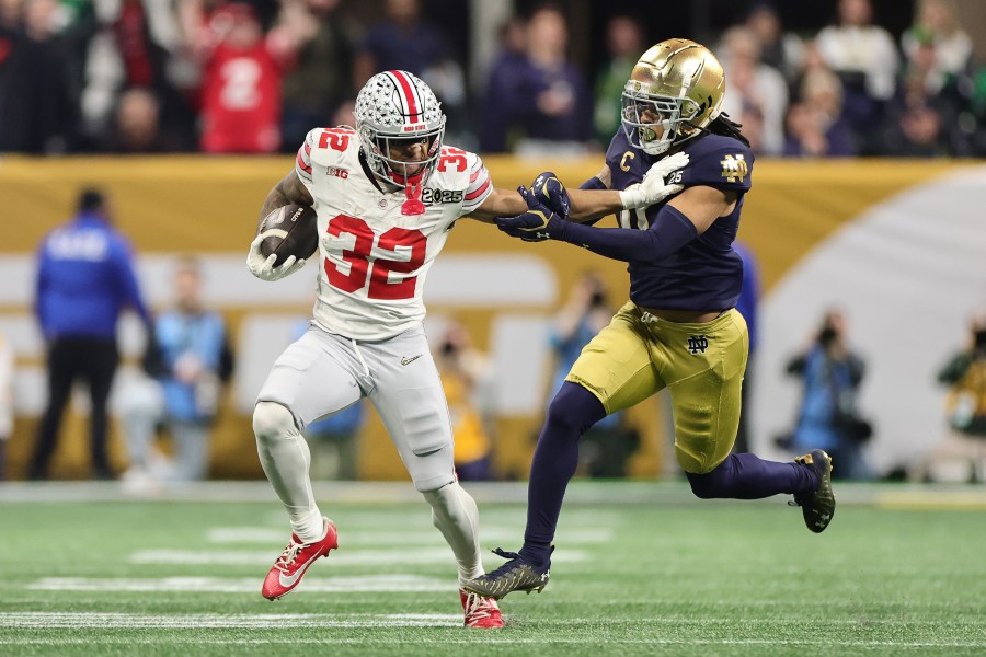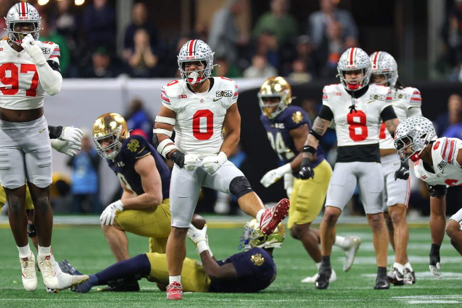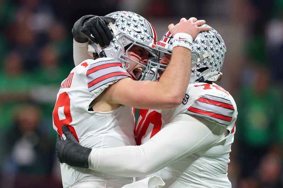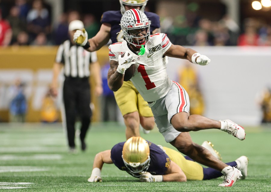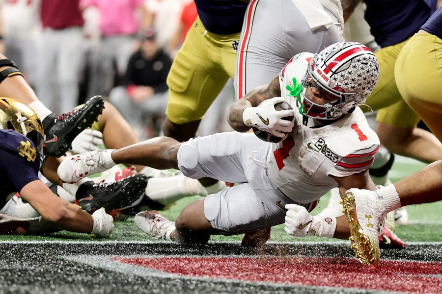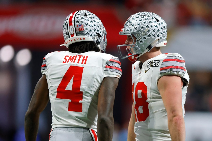 Quarterback Will Howard set a playoff championship game record by completing his first 13 passes. Receiver Emeka Egbuka set a school record by surpassing KJ Hill for most career receptions.