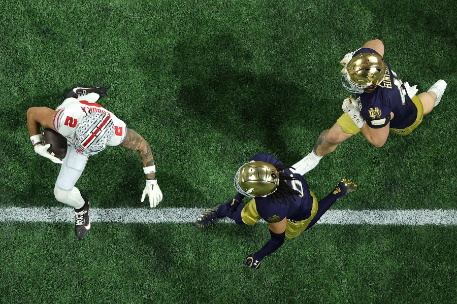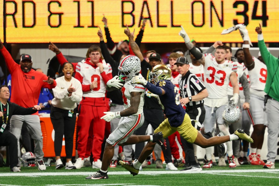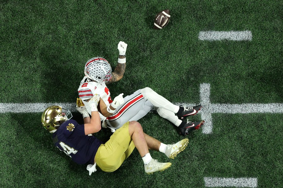 With Notre Dame challenging in the fourth quarter, Howard connected with Jeremiah Smith on a 57-yard pass with two minutes remaining. Jayden Fielding connected on a field goal moments later to leave the Irish with too little time to come back.